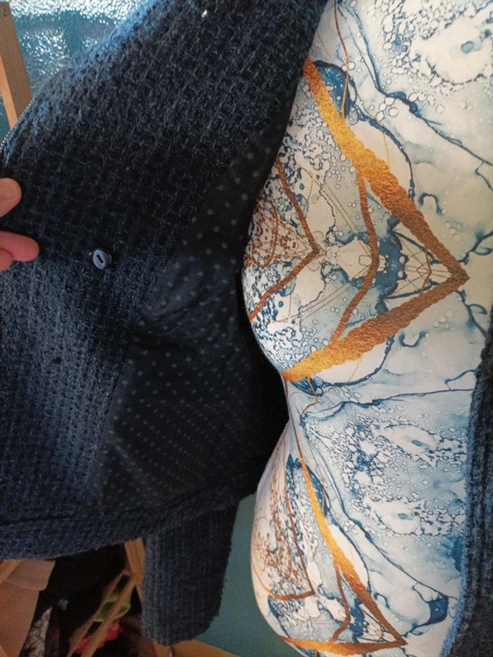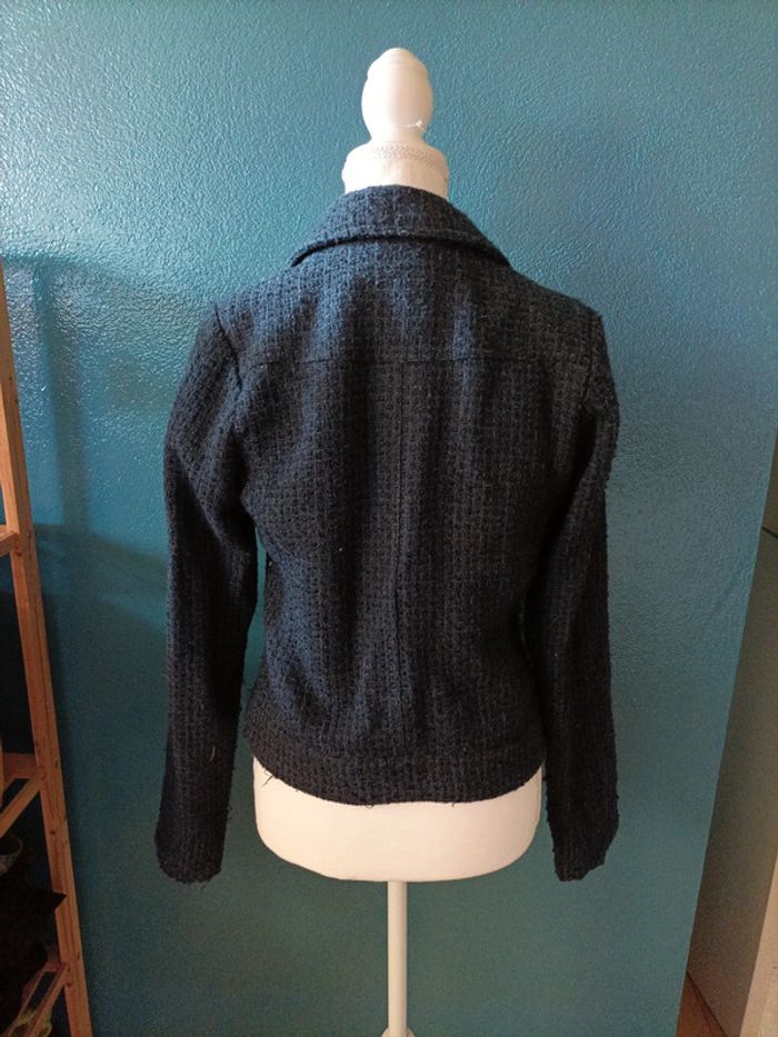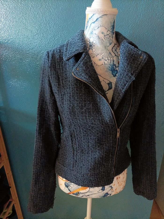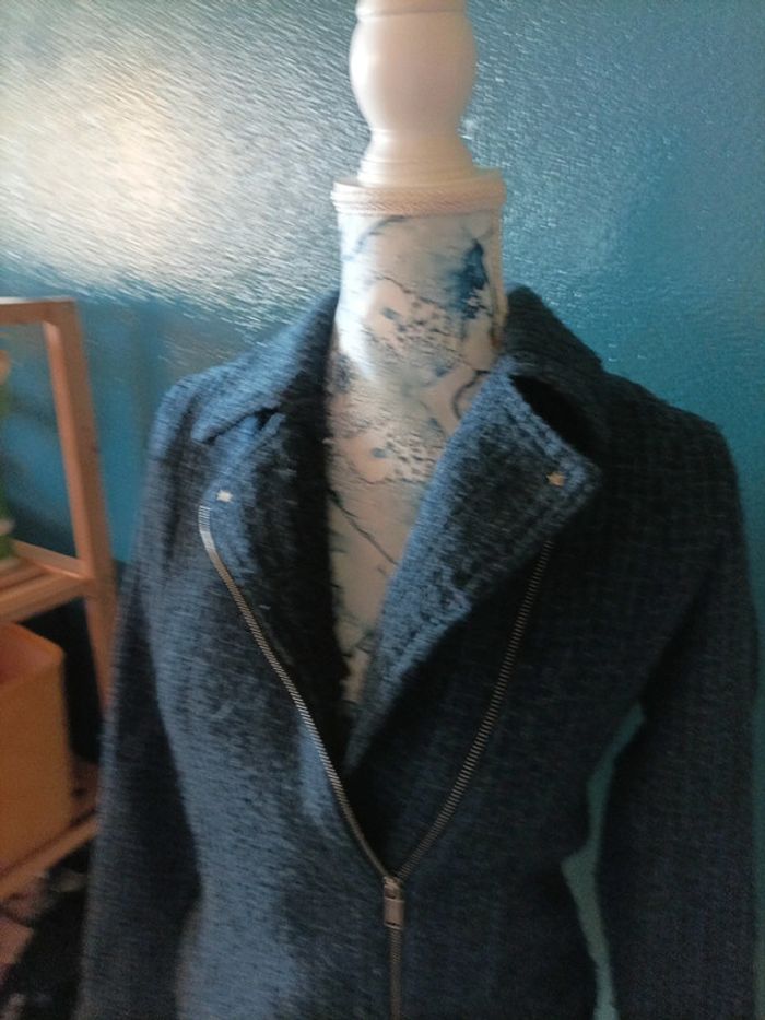 Jolie veste mi saison, bleue, taille un 36, bon juste des bouloches