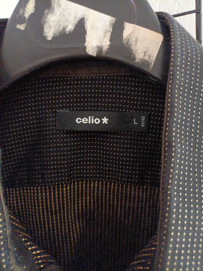 Chemise manches longues, Celio, t L, tbe, noir et doré