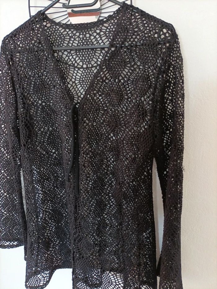 Gilet noir ajouré, tbe, plus d étiquette mais taille un 40/42