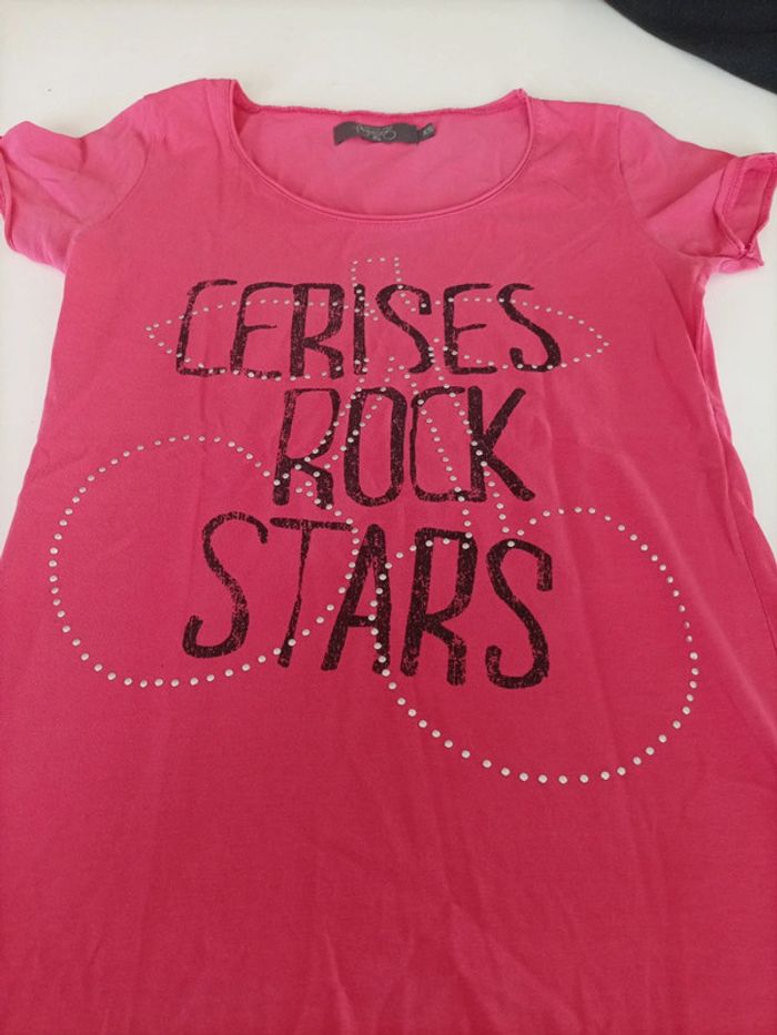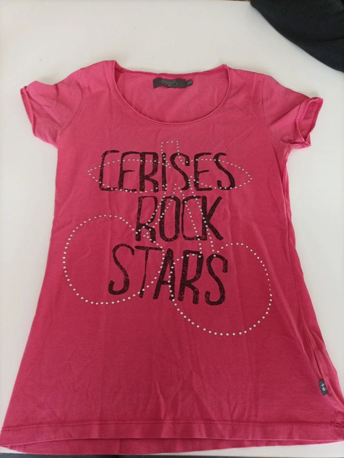 Tee shirt le temps des cerises, taille XS, couleur rose, tbe