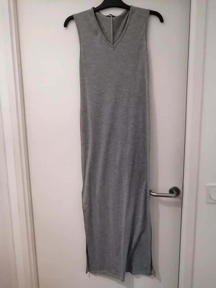 Longue robe moulante Couleur grise Taille 36 En coton avec 2 fentes dans le bas de chaque côté Porté 1 fois