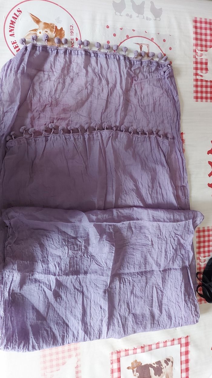 Foulard mauve à pompons, 50 x 175 cm