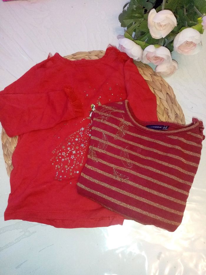 Lot de 2 Tee-shirt manche longue rouge 3 ans sergent major - photo numéro 1