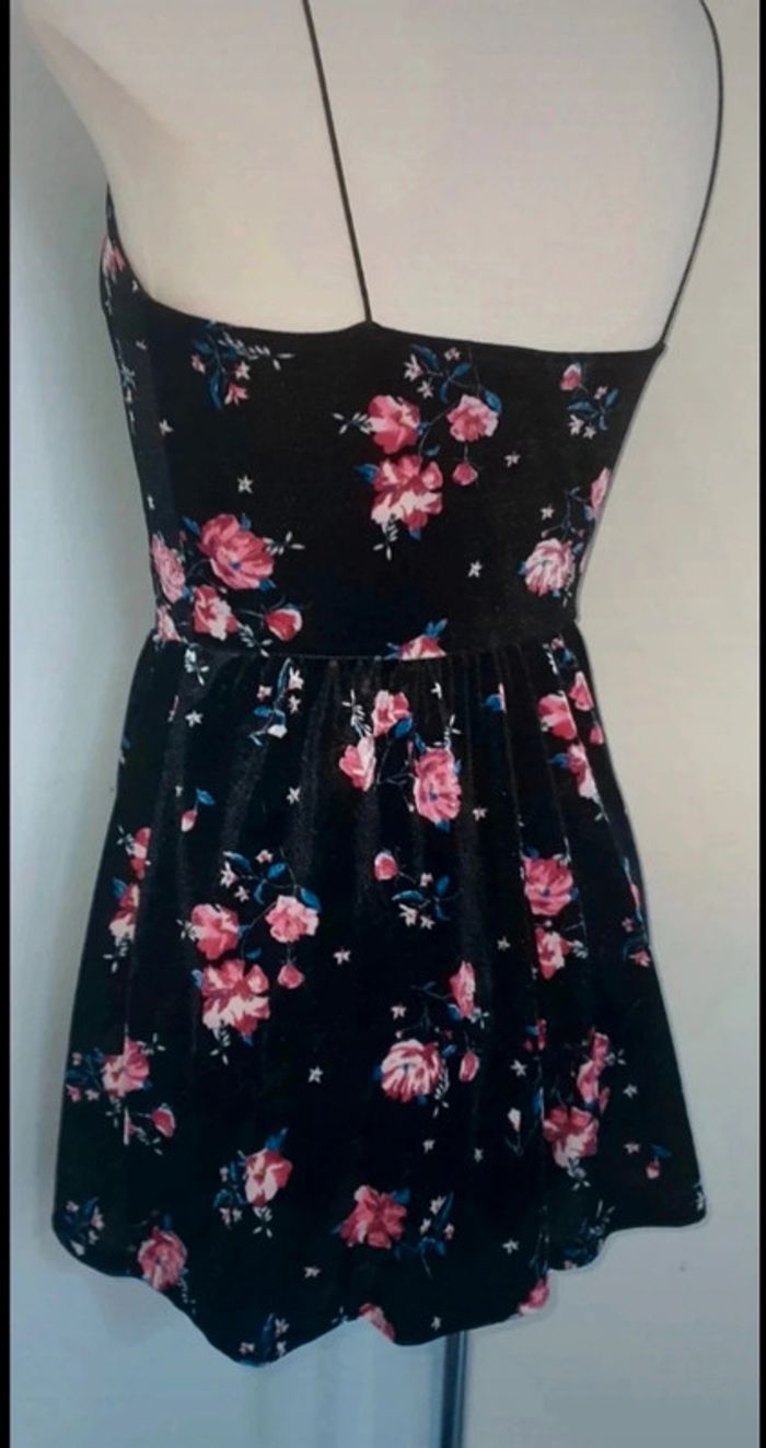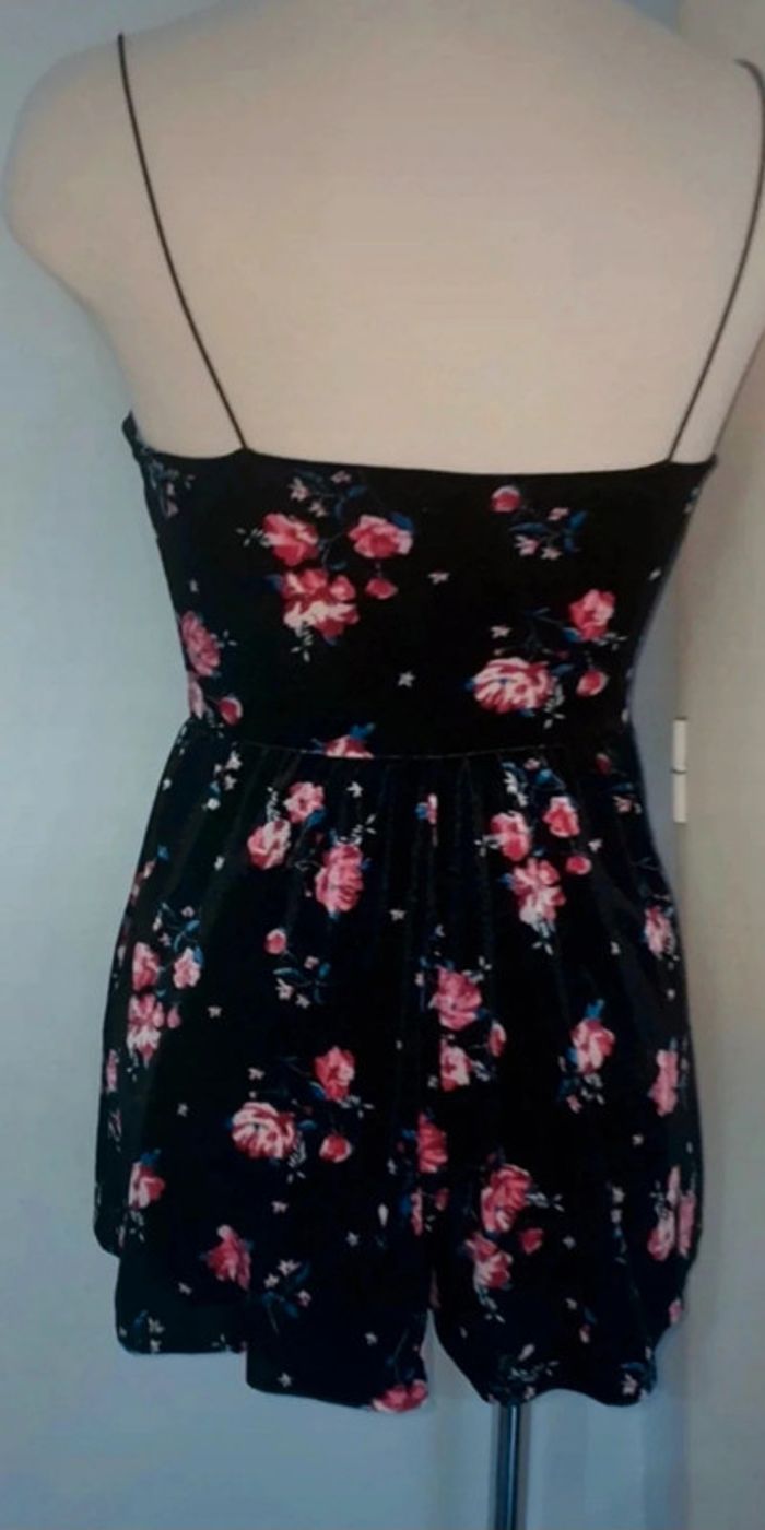 Combinaison short taille 34 de la marque H&M Matière douce , polyester et elasthanne. Effet satinée. Noire à fleurs rose . #A2life_taille34