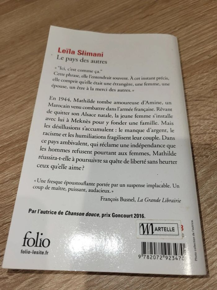 #A2life_livreadulte “Ici, c'est comme ça.”Cette phrase, elle l'entendrait souvent. À cet instant précis, elle comprit qu'elle était une étrangère, une femme, une épouse, un être à la merci des autres."En 1944, Mathilde tombe amoureuse d'Amine, un Marocain venu combattre dans l'armée française. Rêvant de quitter son Alsace natale, la jeune femme s'installe avec lui à Meknès pour y fonder une famille. Mais les désillusions s'accumulent : le manque d'argent, le racisme et les humiliations fragilisent leur couple. Dans ce pays ambivalent, qui réclame une indépendance que les hommes refusent pourtant aux femmes, Mathilde réussira-t-elle à poursuivre sa quête de liberté sans heurter ceux qu'elle aime ? Défauts : traces d'usures sur la couverture et étiquettes sur la première page blanche