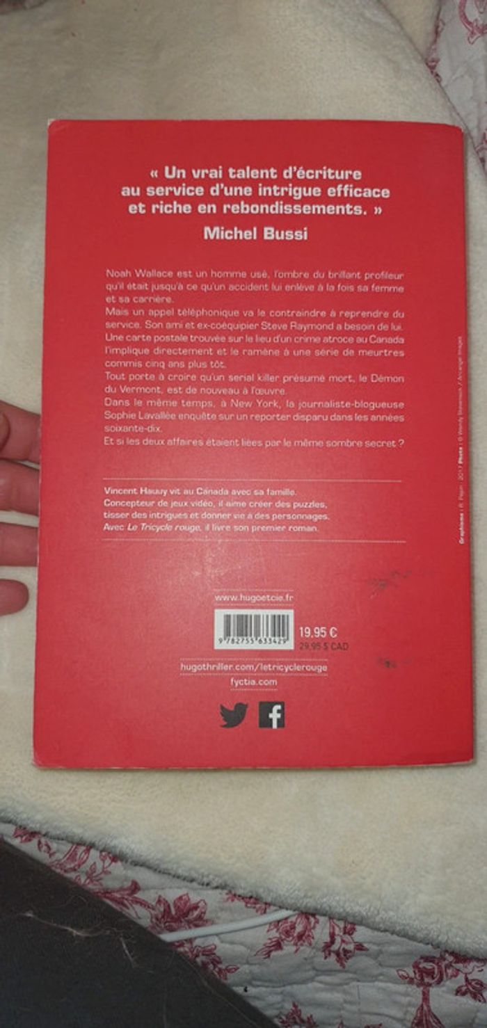 #A2life_livreadulte Livre le tricycle rouge de Vincent hauuy Un t(h)ri(ller)cycle qui roule Comment parler de ce roman sans en divulguer l'intrigue ?Je crois que c'est tout simplement impossible, aussi ne vais-je pas présenter l'histoire plus que ce que le fait la quatrième de couverture. Cependant, je peux ajouter qu'en lecteur averti on devine quelque peu la fin, mais que la qualité d'écriture de Vincent Hauuy permet de garder le suspense jusqu'au bout de l'histoire, et de ne donner les explications que tout à la fin.L'histoire est soutenue par des personnages forts, mystérieux, qui se dévoilent et se découvrent au fur et à mesure de l'investigation. Du fait de leur passé et de leur aventure respectifs, leur psychologie est différente, complexe, interrogative; sans pour autant rendre ce thriller psychologique.Tant les actions que les rebondissements jalonnent ce roman; et avec la fluidité d'écriture, les pages défilent sans jamais lasser le lecteur.Un point qui m'a quelque peu perturbé : l'auteur, à propos de Noah, fait de nombreuses allusions à des enquêtes passées. Or je ne savais pas si ce roman faisait partie d'une série (infirmation de ce point après quelques recherches) ou si cela faisait partie intégrante du roman pour renforcer le personnage.Seul point négatif, mais qui est très personnel, est l'accumulation des personnages dont certains avec des noms d'emprunt. Aussi, soit vous lisez Le tricycle rouge en très peu de temps et d'interruptions et vous pourrez vous souvenirs de qui est qui, soit vous avez un très bonne mémoire des noms, soit vous vous munissez d'un petit papier pour combler la déficience de vos neurones.
