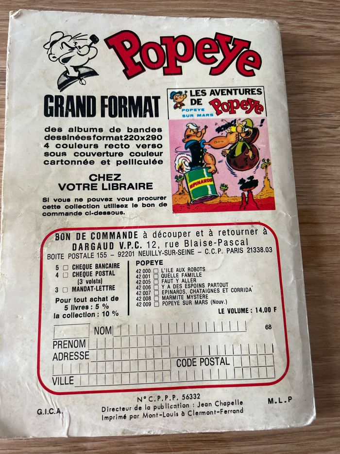 Mensuel n163 Cap’tain présente Popeye 1976 mars Traces d’usure Vintage