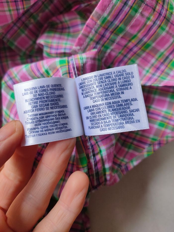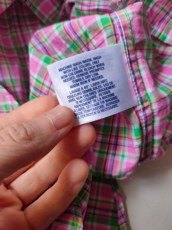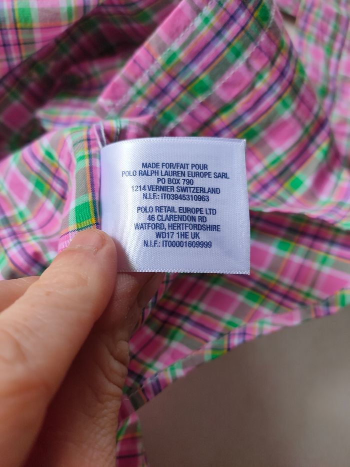Chemise a carreaux coloris rose/vert/ bleu, manches longues, 100% coton, marque Ralph Lauren, taille 6 ans. Elle est en excellent état, proche du neuf étant donné qu'elle a été porté seulement une fois. Composition : 100% coton Le colis sera scrupuleusement pris en photo avant envoie !!!