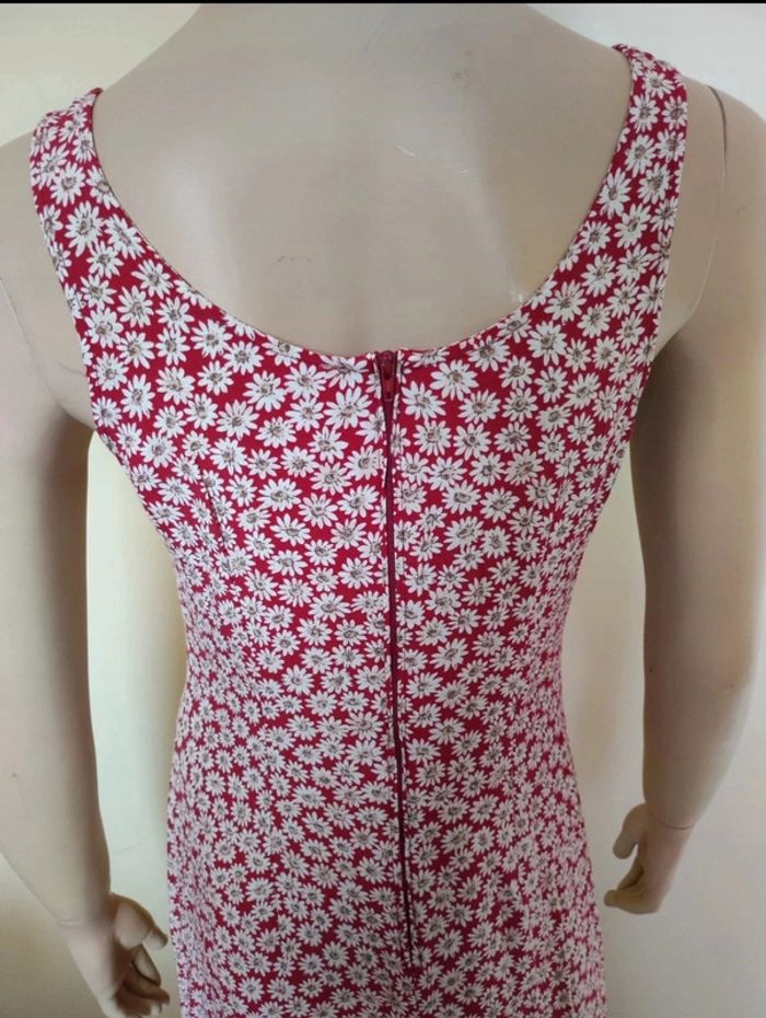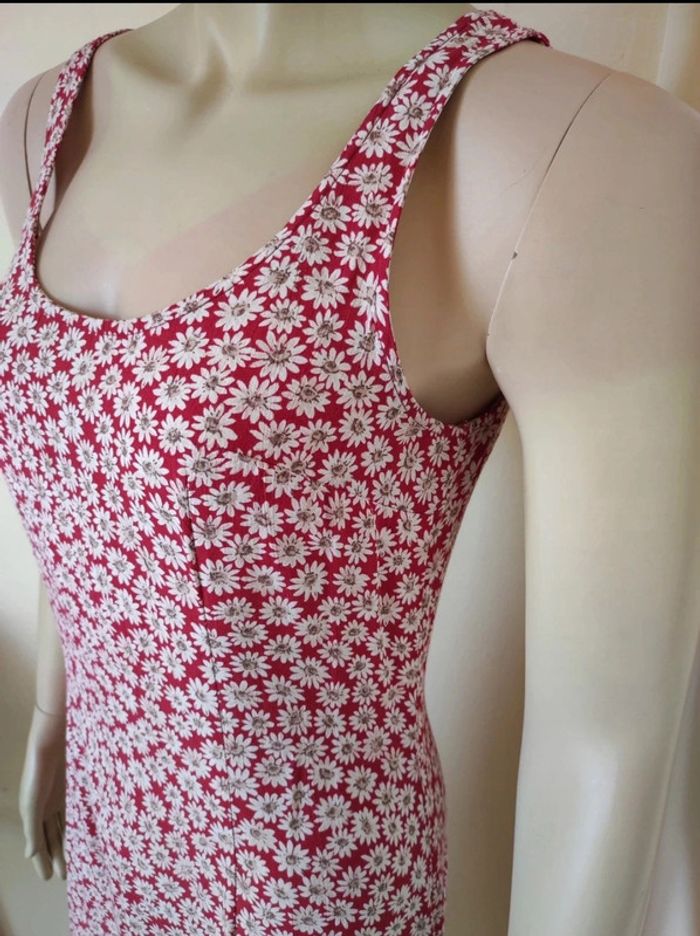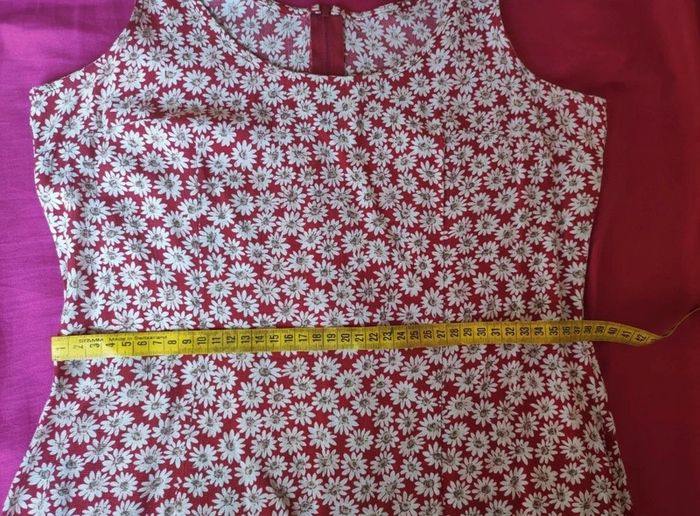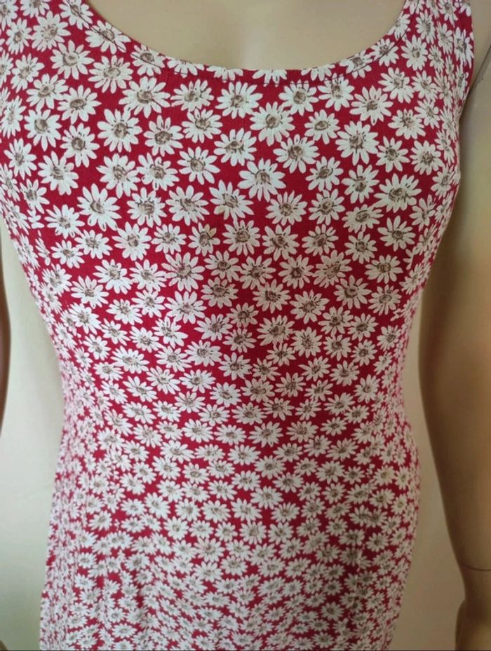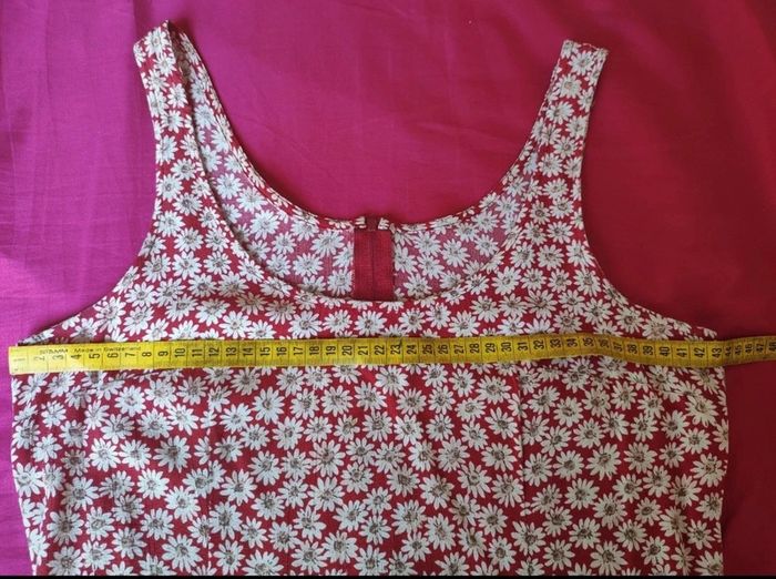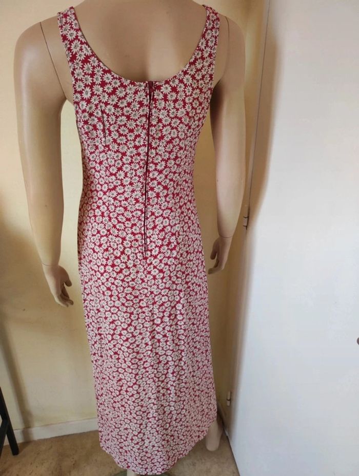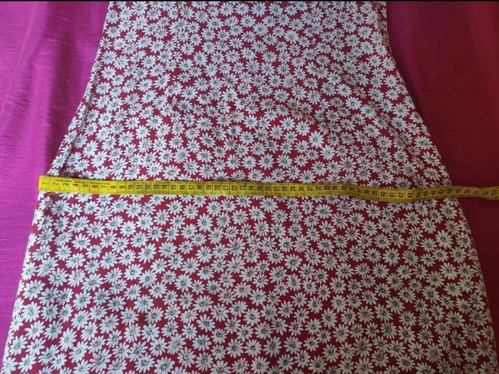 Robe d'été. Matière agréable. Malheureusement les étiquettes de la taille et de la marque ont été coupées. De mémoire, je dirai qu'il s'agit d'une taille 38. J'ai mis quelques mesures pour vous aider. N'hésitez pas si vous avez besoin de plus d'informations. Couleur entre rouge et bordeaux. #fleurs #blanc #marguerites #robelongue #légère #estivale #finesbretelles #mvasseur74430Femme