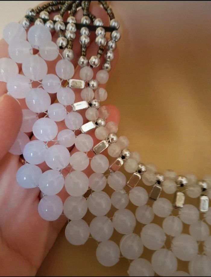 Collier en perles blanches. Possibilité de régler la longueur. #mvasseur74430AccessFem #ethnique #chic #rasdecou