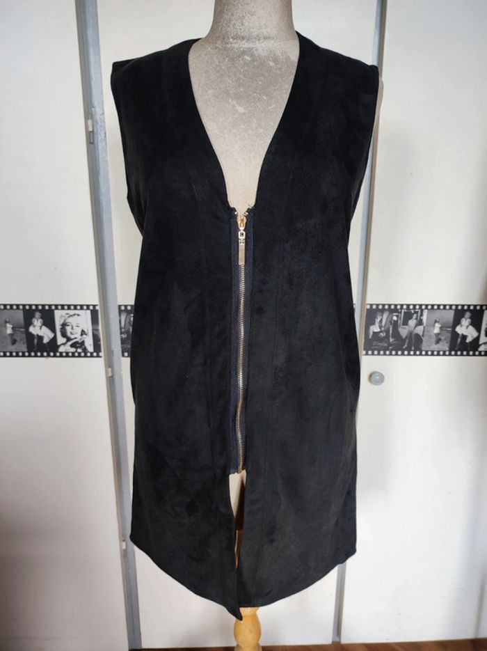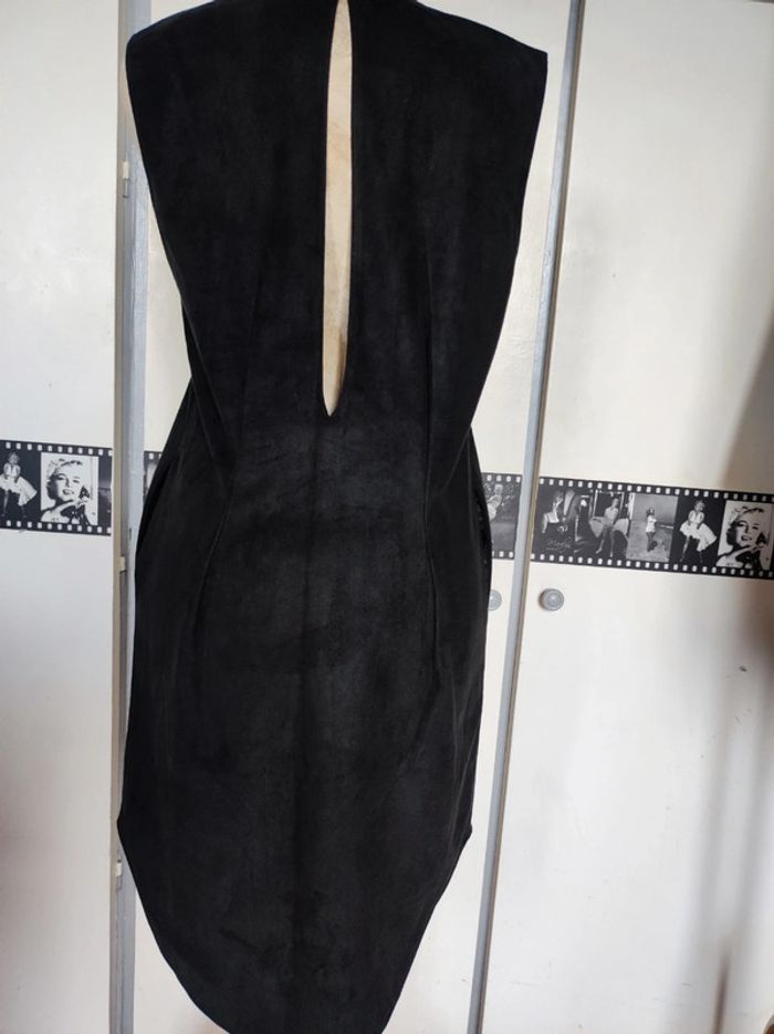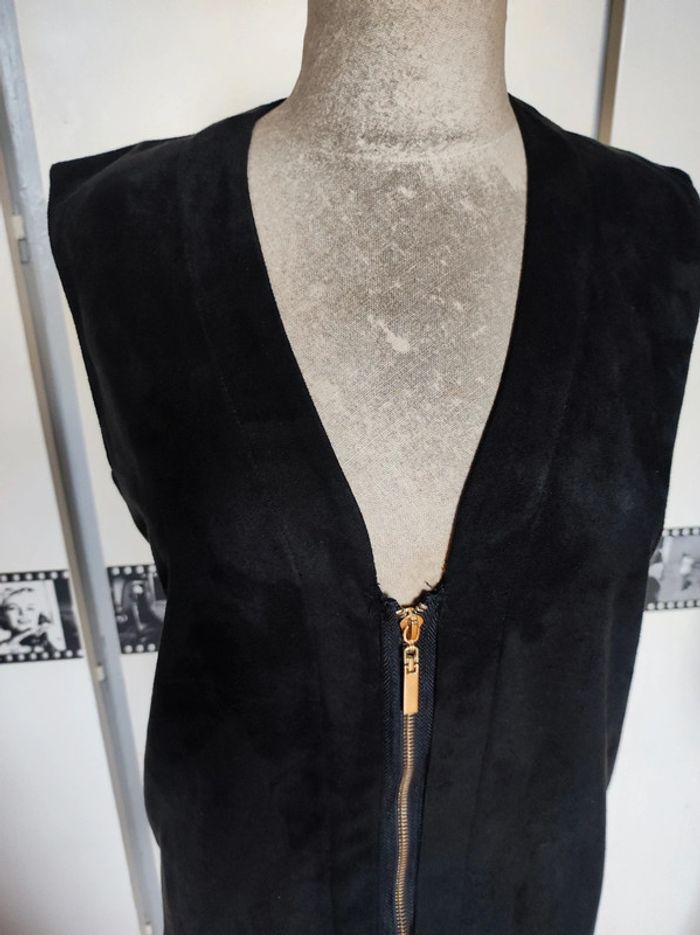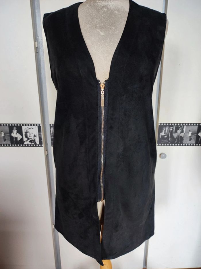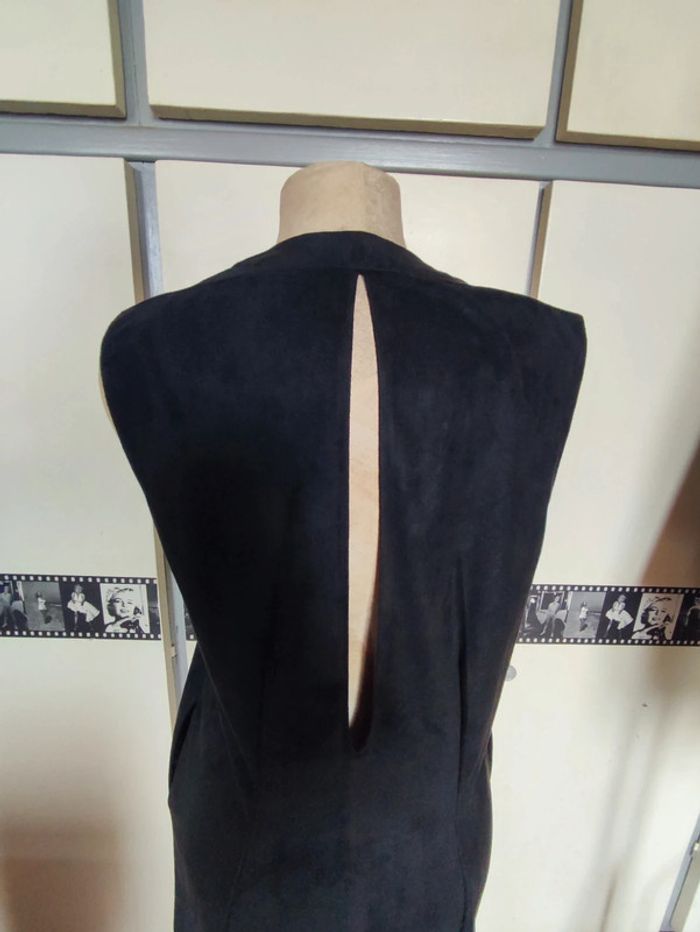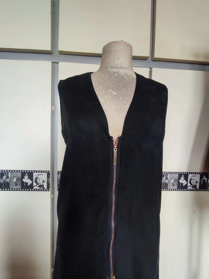 Tunique noire, fermeture devant, ouverture dans le dos. Matière très douce comme du velours lisse, de la peau de pêche ... Neuve, jamais portée. Taille unique (mais je dirais taille 38 / 40). N'hésitez pas si vous voulez que je prenne des mesures. #suédine #mvasseur74430Femme #peaudepeche #velours