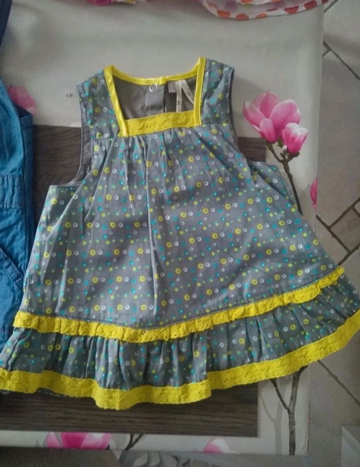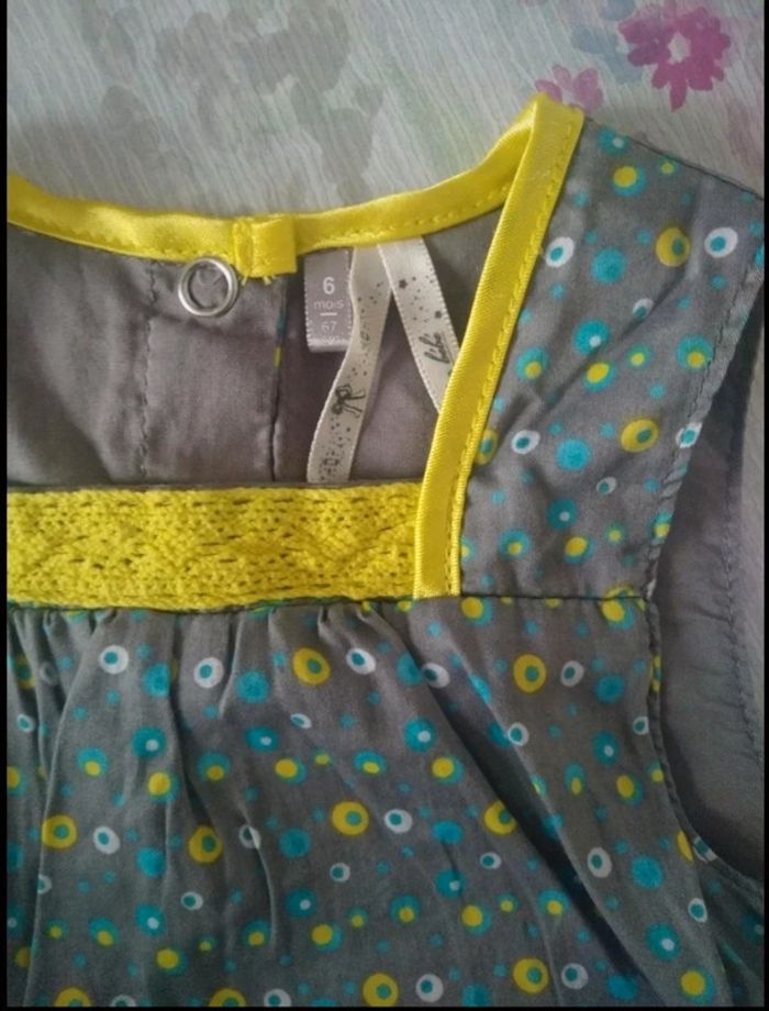 Petite Robe . Sympa pour les beaux jours. Dans les tons taupe - gris / anis / turquoise. Il s'agit d'une taille 6 mois / 67 cms #été #mvasseur74430bébéF