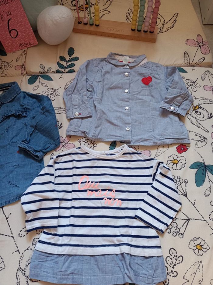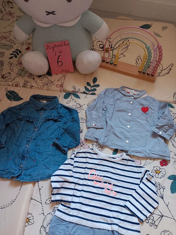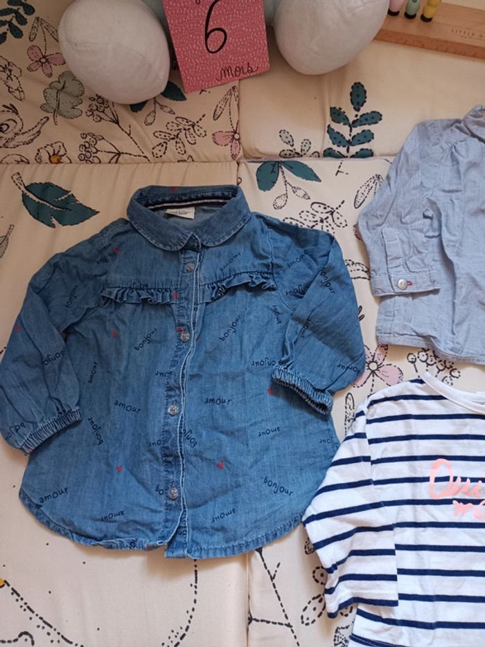 Lot 3 hauts 6 mois 1 tape à l'oeil 1 Okaïdi 1 Vertbaudet Très bon état #ilyana86100_fille_6mois
