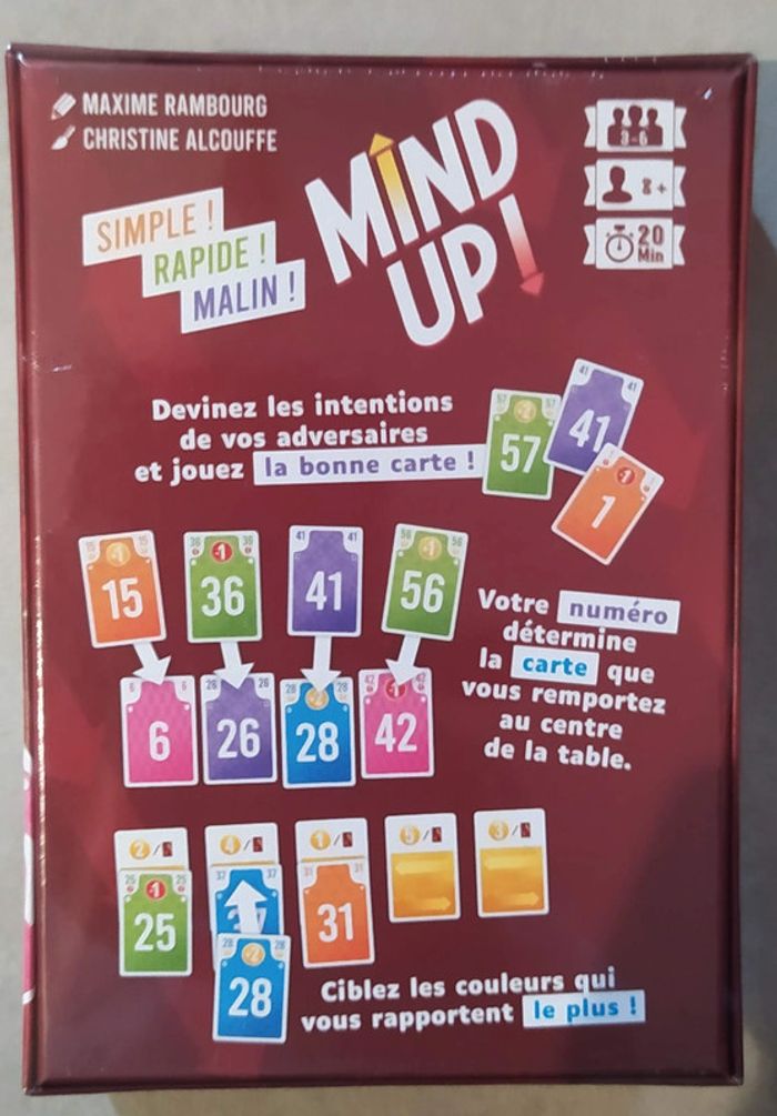 Derrière son immédiateté et sa grande simplicté d’accès, Mind Up! dévoile au fil des parties de nombreuses subtilités : vos capacités à bien utiliser les cartes de votre main et à deviner quelles cartes vos adversaires convoitent feront la différence ! Après quelques parties, une règle optionnelle ajoutant des objectifs bonus permet d’ajouter encore un peu de piquant et de profondeur tactique au jeu.