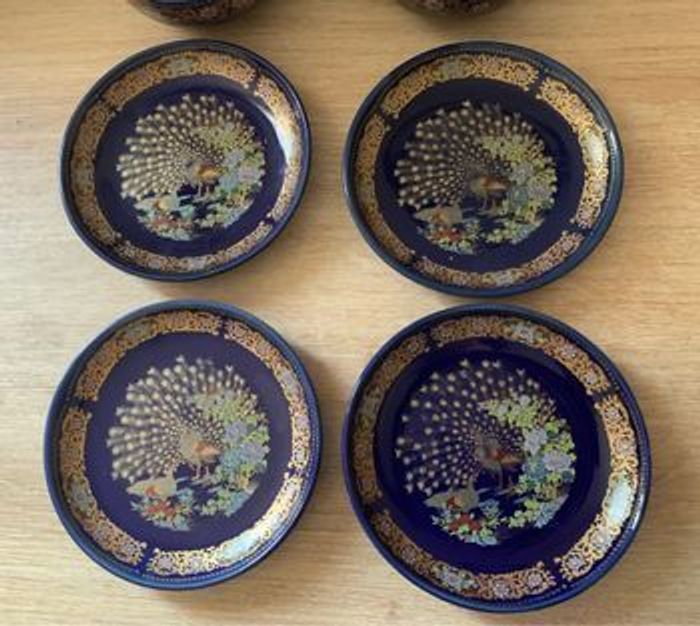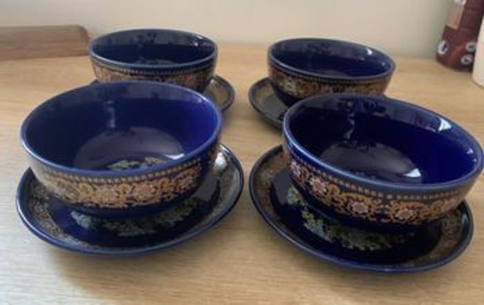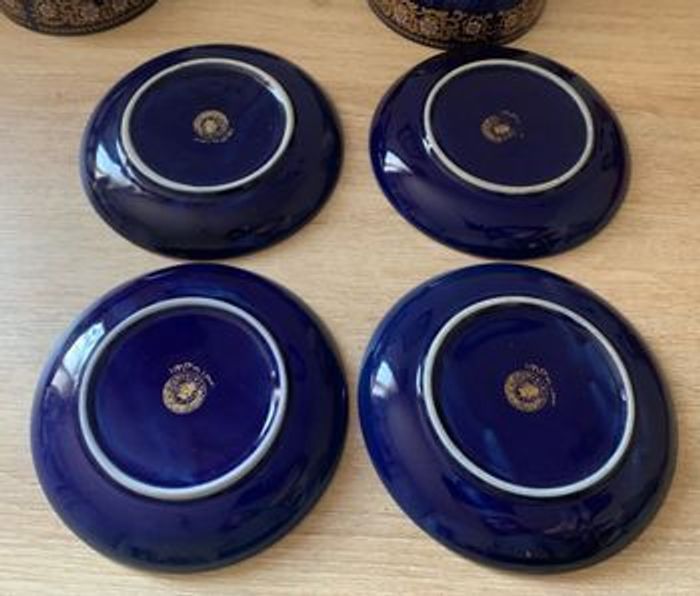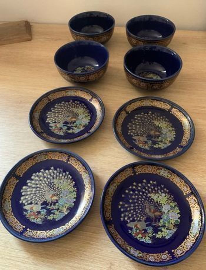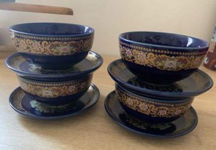 Service rare et ancien signé en porcelaine Chinoise 4 bols et 4 petites assiettes