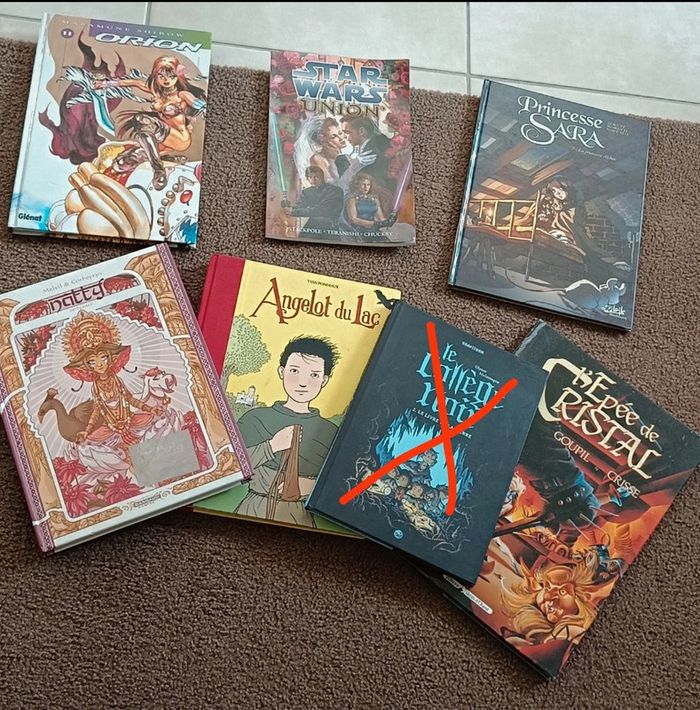 Bd bande dessinée - Natty intégrale melvil corbeyran Dargaud : 5 euros - orion Glénat II 2 masamune shiros bd manga tbe : 6 euros - angelot du lac trilogie réunit en 1 seul album Yvan pommeaux TBE Bayard jeunesse : 5 euros - le collège noir tome 2 le livre de la pierre Ulysse malassagne grafiteen TBE : 3 euros VENDU - l'épée de cristal goupil crisse regard de wenlok vents d'ouest : 1 euro - princesse sara tome 2 princesse déchue alwett Moretti boccato soleil Blackberry : 1 euro - star Wars union attention en anglais stackpole teranishi chuckri Lucas book: 75 euro Isbn 9781569714645 maison non fumeur et sans animaux n'hésitez pas à faire des lots