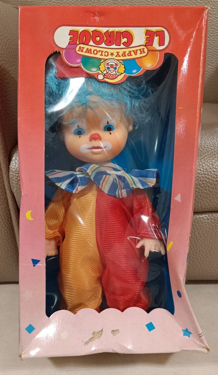 Poupée clown happy clown cirque dans sa boîte vintage collection maison non fumeur et sans animaux n'hésitez pas à faire des lots figurine collector jouet poupée peluche