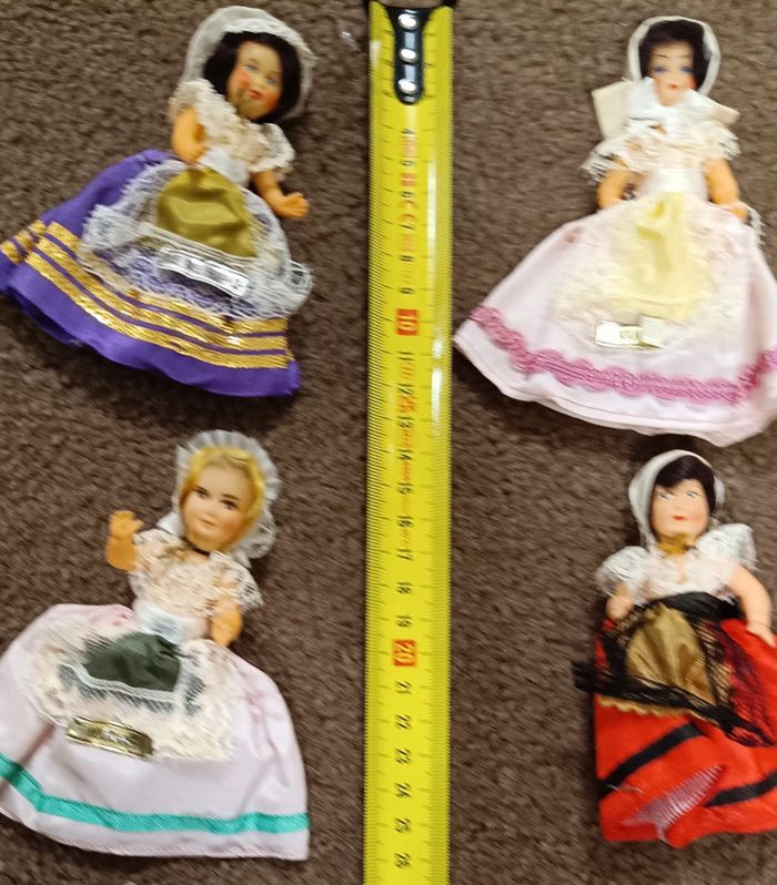 Lot 4 poupées anciennes ile de France / Touraine/ Bourgogne Folklorique Robe à fleurs dentelle vintage collection maison non fumeur et sans animaux n'hésitez pas à faire des lots figurine collector jouet poupée peluche