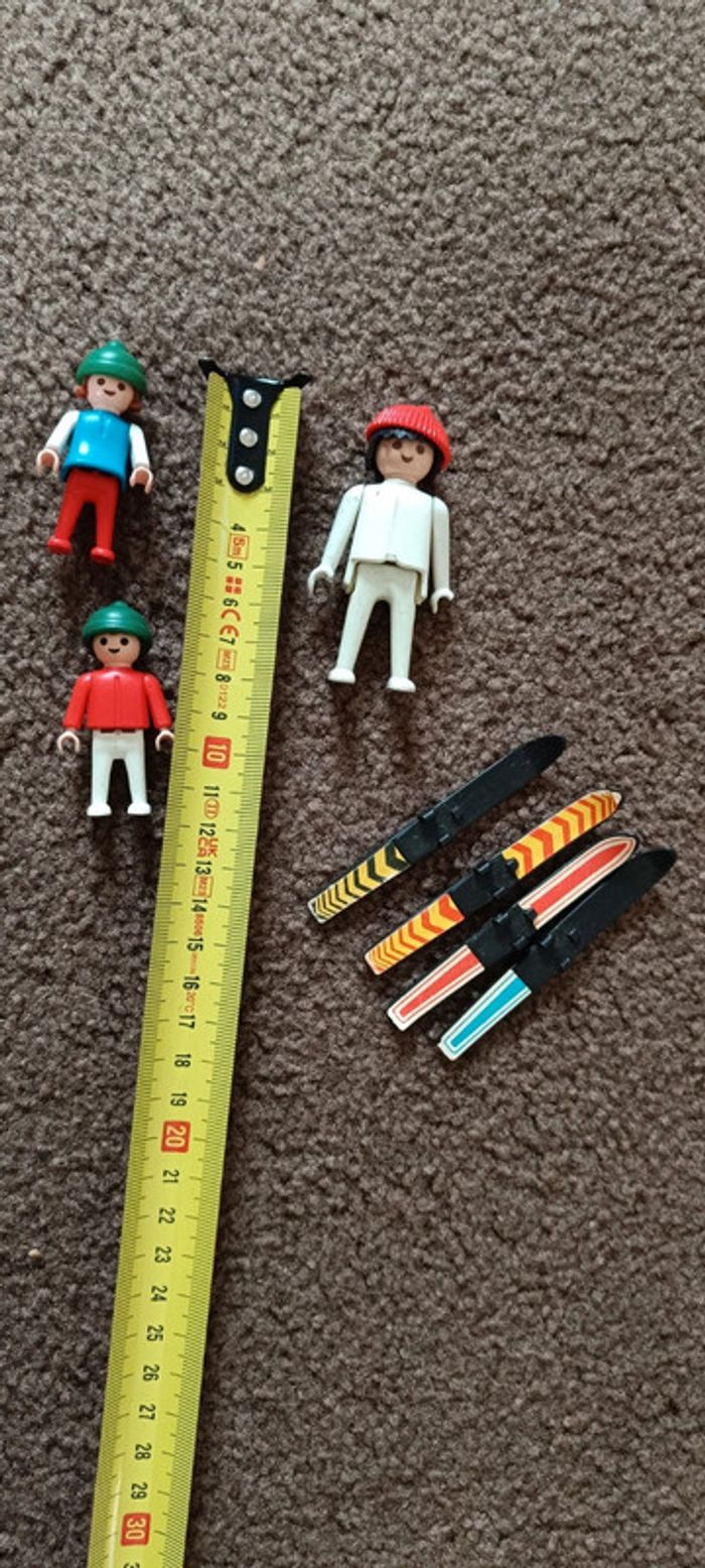 Lot playmobil skieur 1 adulte 2 enfants personnage Ski bonnet accessoires Figurine collector jouet poupée peluche vintage collection maison non fumeur et sans animaux n'hésitez pas à faire des lots