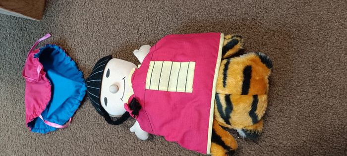 Peluche collection Doudou Jouet doux vintage UNICEF années 1990 3 en 1 tigre, fille, garçon. Poupée marion marionnette Tigre tout doux UNICEF huningue France Figurine collector jouet poupée peluche vintage collection maison non fumeur et sans animaux n'hésitez pas à faire des lots