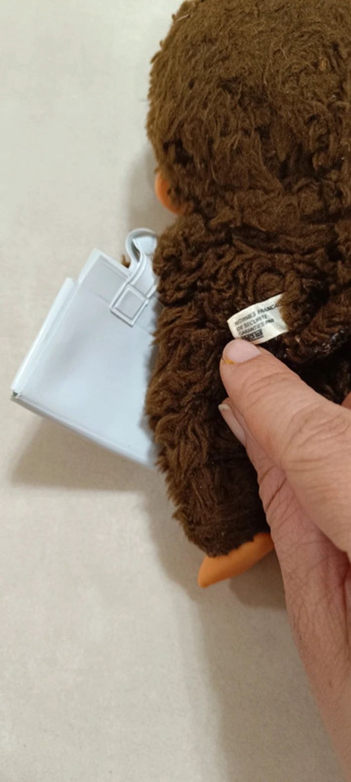 Kiki 18 cm avec étiquette Yeux bleus avec tenue sac marché Kiki monchhichi ajena sekiguchi collector, collection vintage n'hésitez pas a faire des lots