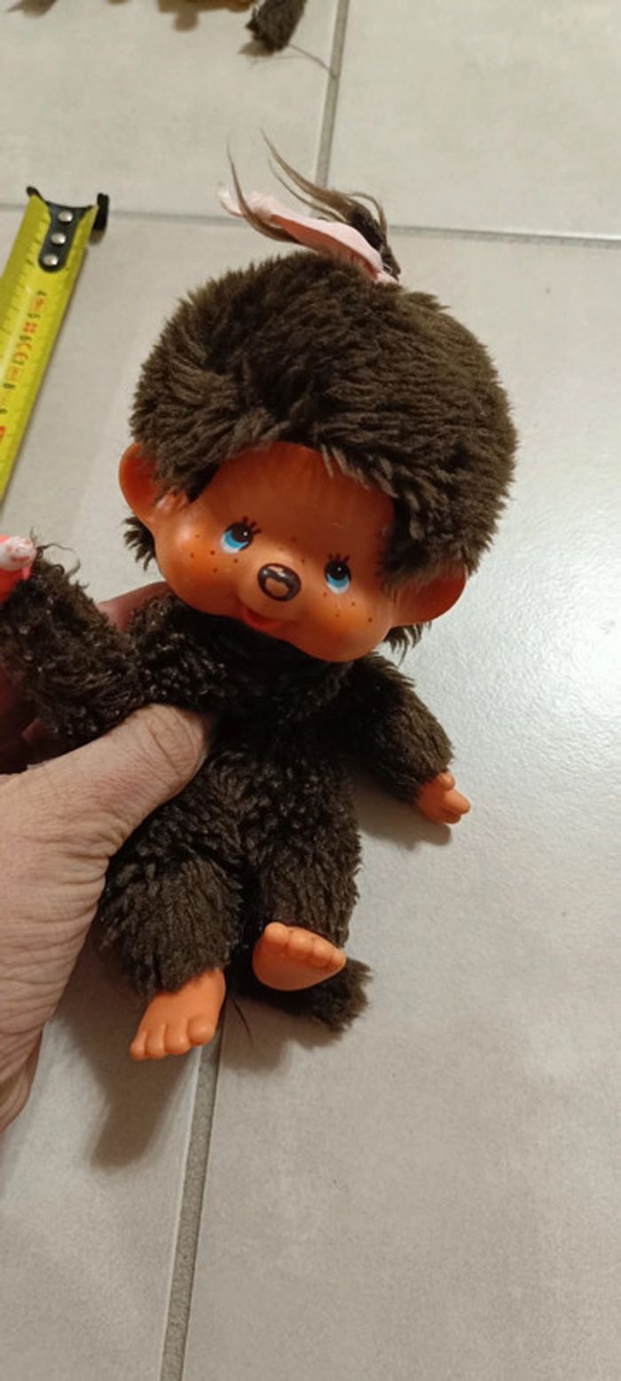 Peluche kiki futago futagonomonchhichi japan 1974 Avec couette rose Kiki monchhichi ajena sekiguchi Yeux bleus collector, collection vintage n'hésitez pas a faire des lots