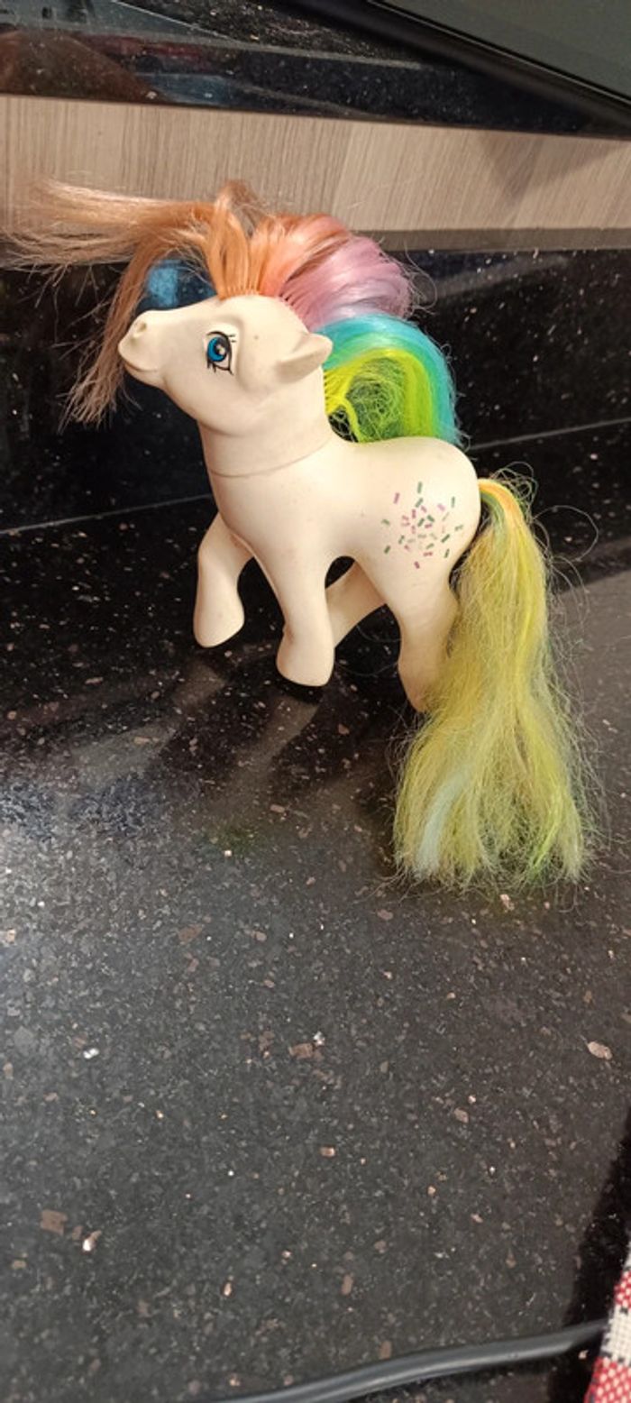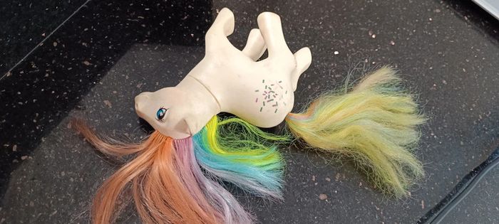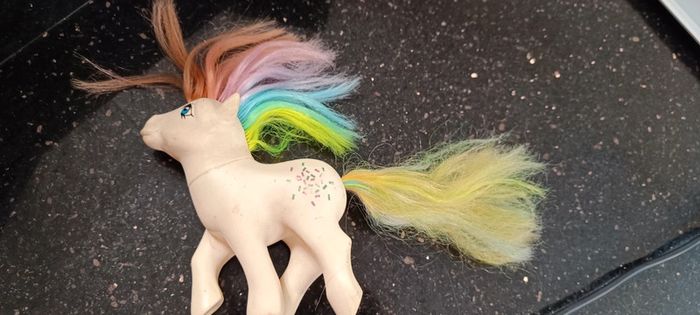 Mon petit poney confetti confettis confeti Little poney Pony 84 italy 1984 g1 Crinière arc en ciel Cheval poney Hasbro vintage collection jouet figurine articulée maison non fumeur et sans animaux n'hésitez pas à faire des lots