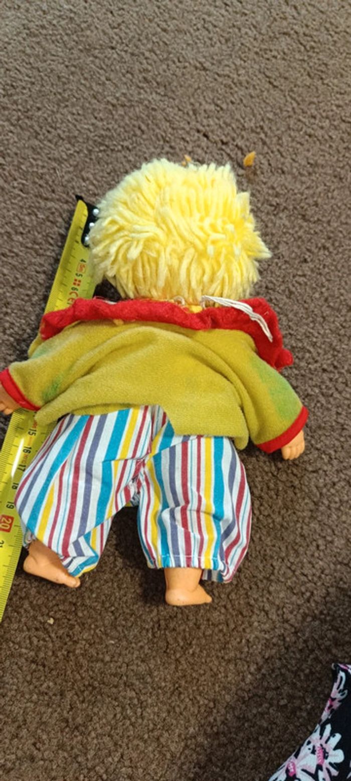 Poupée style cabbage patch cirque Cheveux laine jaune Clown cirque Jeu jouet vintage figurine collector, collection vintage Maison non fumeur et sans animaux n'hésitez pas a faire des lots