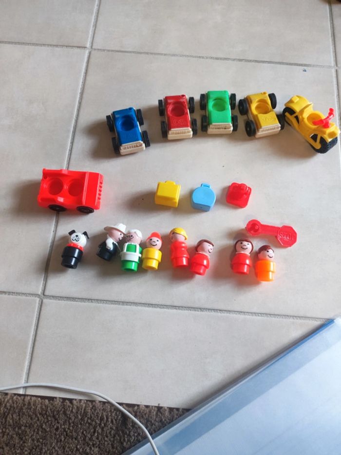 figurine fisher price little people famille voitures moto personnages chien figurine collector jouet vintage collection maison non fumeur et sans animaux n'hésitez pas à faire des lots