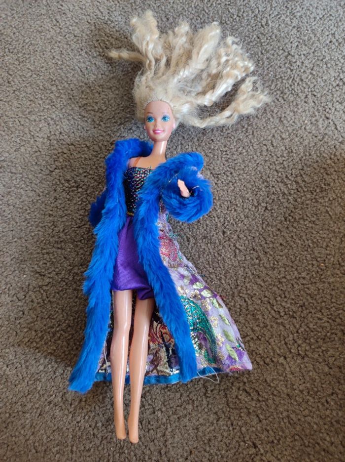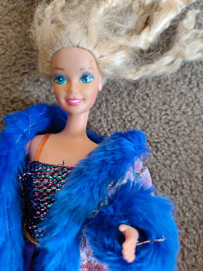 mattel 1991 magnifique barbie poupée avec boucles d'oreille tenue manteau fourrure robe strass parlante? non testée jouet, vintage, objet de collection vintage collection collector maison non fumeur et sans animaux n'hésitez pas à faire des lots