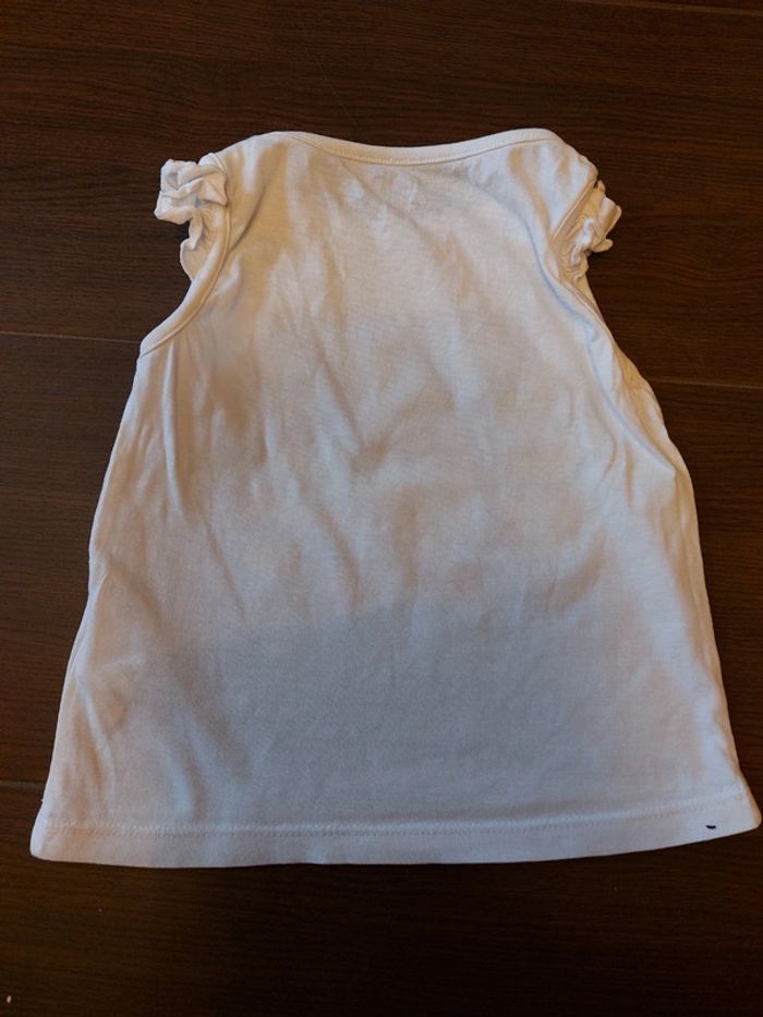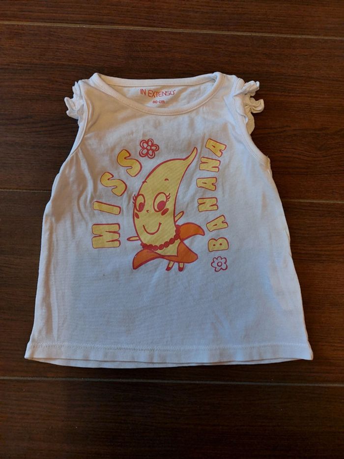 #laetitia8110filleT18mois Débardeur blanc avec comme motif une banane rigolote.