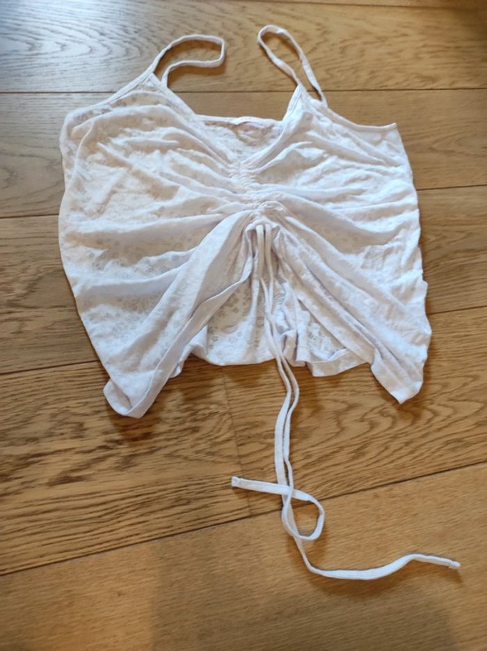 Très joli haut t shirt débardeur blanc se transforme en croc top en tirant sur le lacet jolis motifs fines bretelle taille 40 Camaïeu femme jeune fille maison non fumeur et sans animaux n'hesitez pas à faire des lots