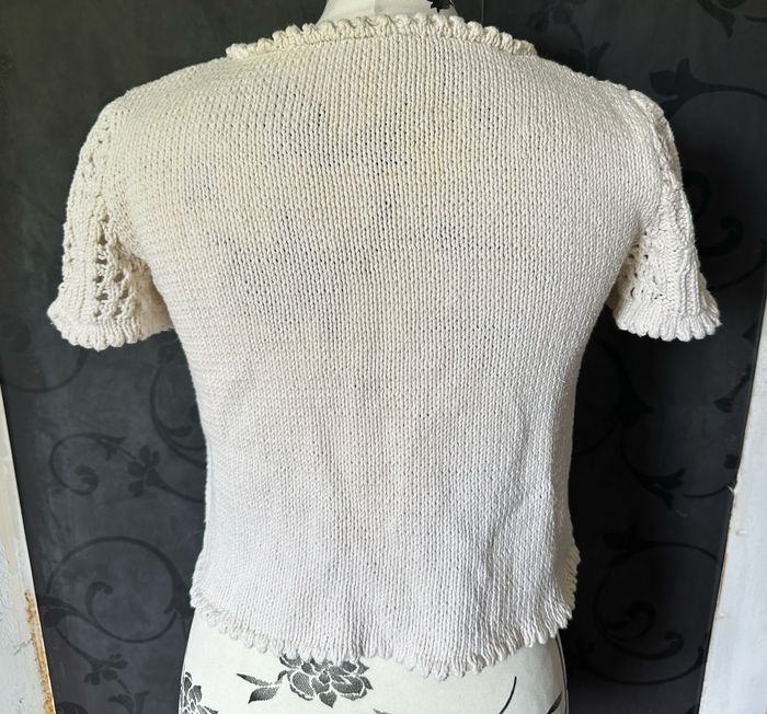 Gilet court maille crochetée écru taille 38/40 - photo numéro 4