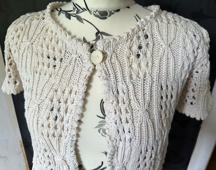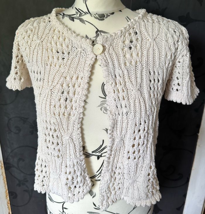 Gilet court maille crochetée écru taille 38/40 - photo numéro 1