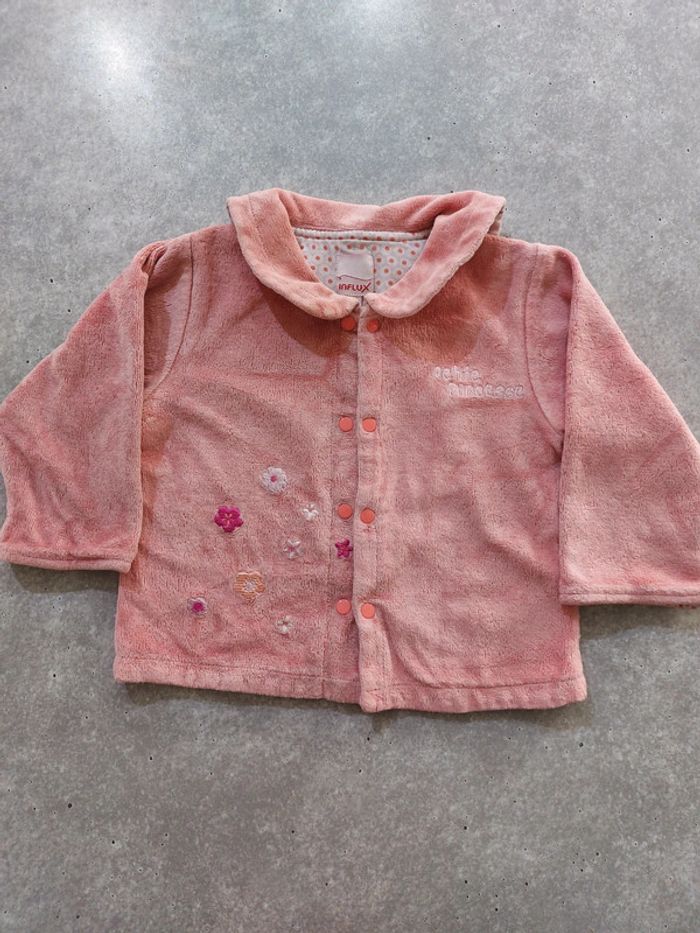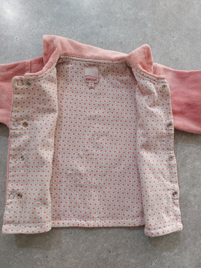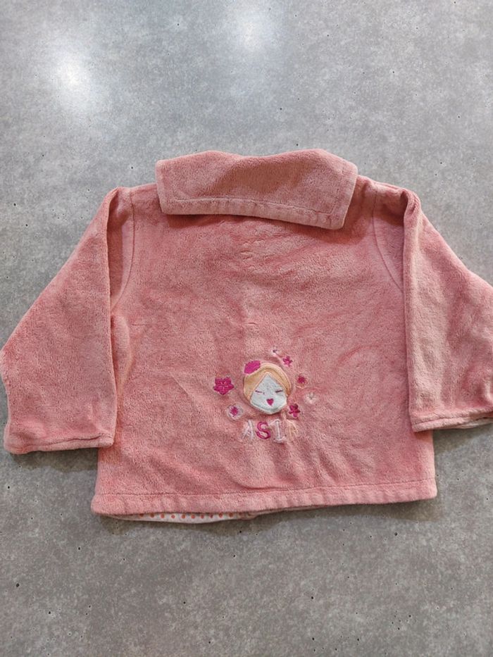 #laetitia8110filleT9mois Gilet chaud rose, en bon état.