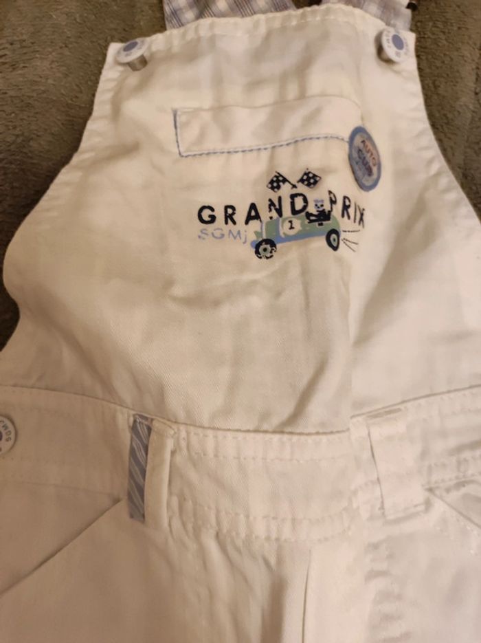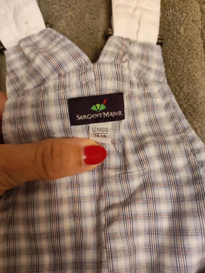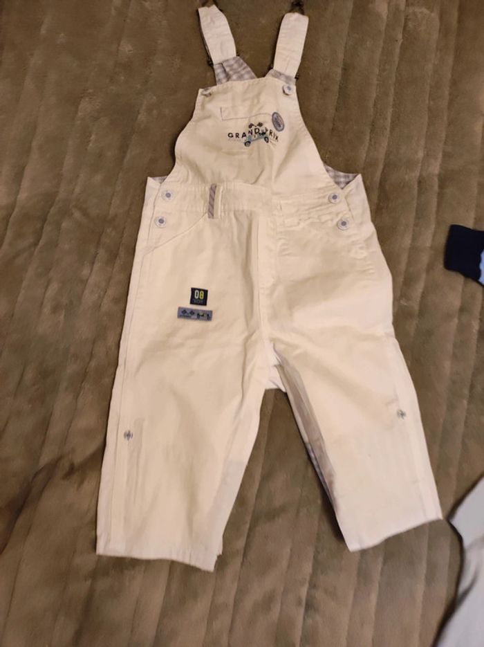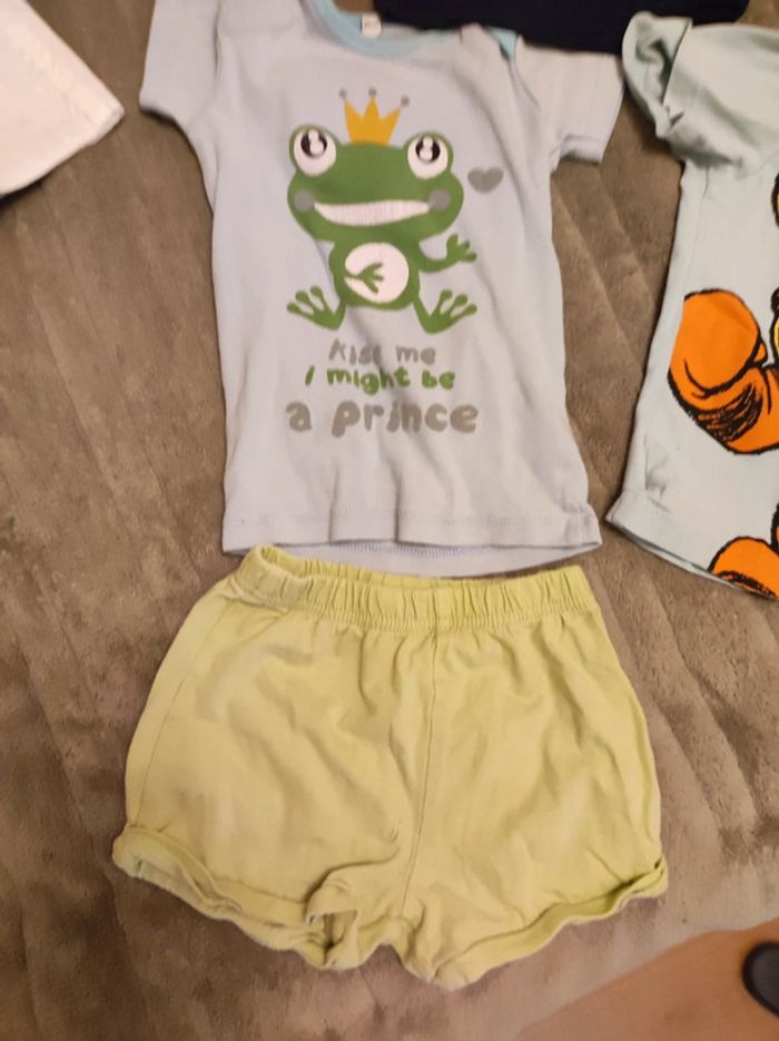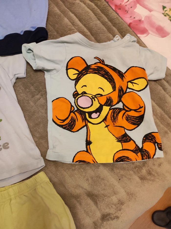 lot 5 vetements garçon bébé 12 mois 1 an - 1 salopette blanche sergent major, 1 t-shirt manches courtes tigrou bleu ciel disney winnie, un short vert, 1 t-shirt grenouille, 1 manche longue bleu maison non fumeur et sans animaux n'hésitez pas à faire des lots