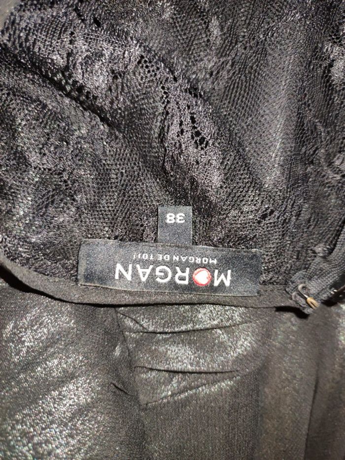 magnifique robe noire dentelle bas brillant noir irisé taille 38 morgan excellent état soirée fête au quotidien coktail maison non fumeur et sans animaux n'hesitez pas à faire des lots