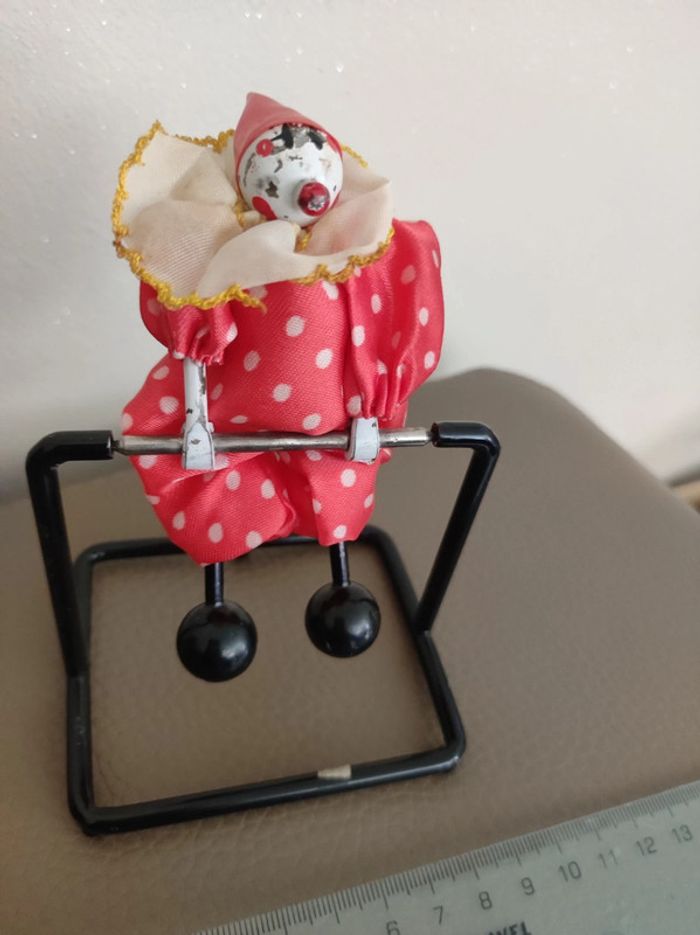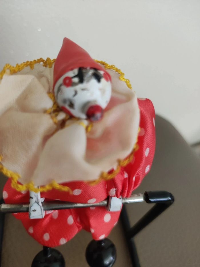clown sur barre métallique qui se balance rouge blanc pois style pierrot vintage collector collection maison non fumeur et sans animaux n'hésitez pas à faire des lots