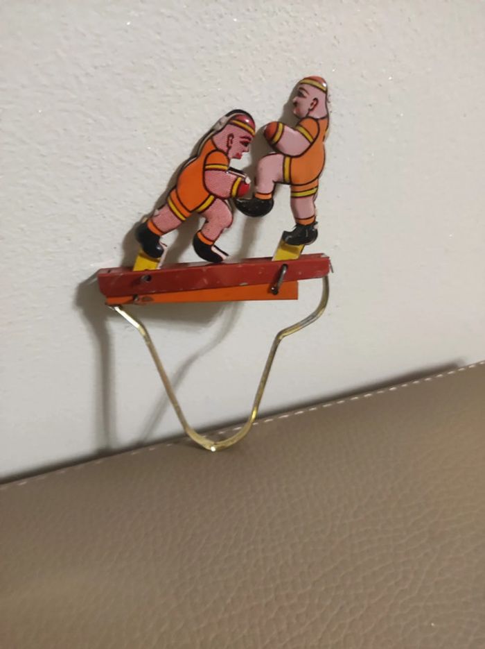 Quel charme de découvrir ces petits jouets de trois fois rien, des petits boxeurs qui s'agitent et se visent de leurs poings respectifs ! Que le meilleur gagne ! Ce sont de petits automates mécaniques en tôle lithographiée à manipuler avec la main tout simplement ! jouet rare ancien années 30 tin litho combat mécanique style boxeur etnic, lutte vintage collector collection maison non fumeur et sans animaux n'hésitez pas à faire des lots