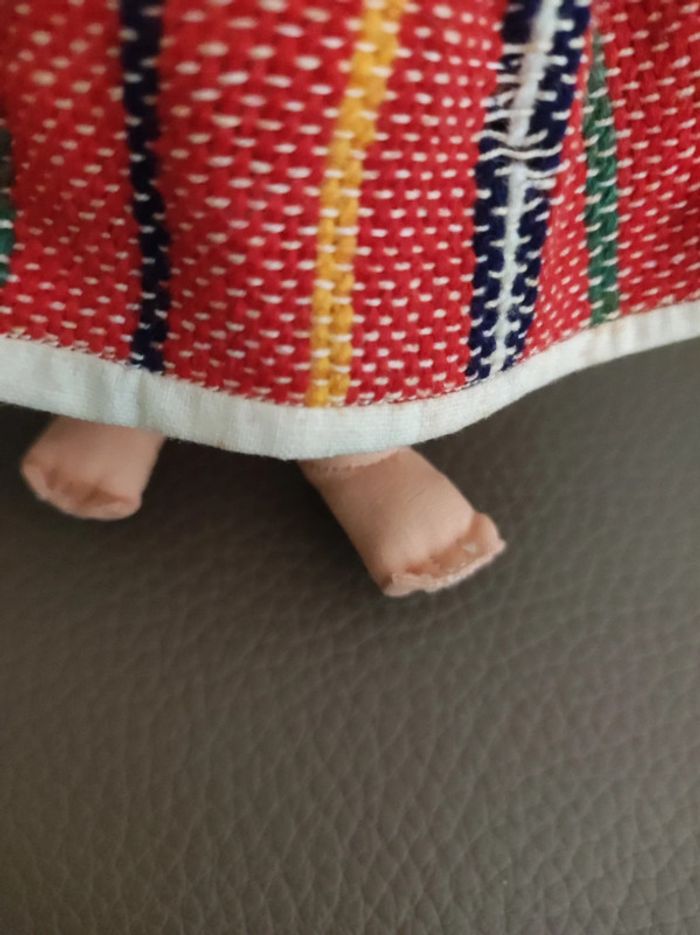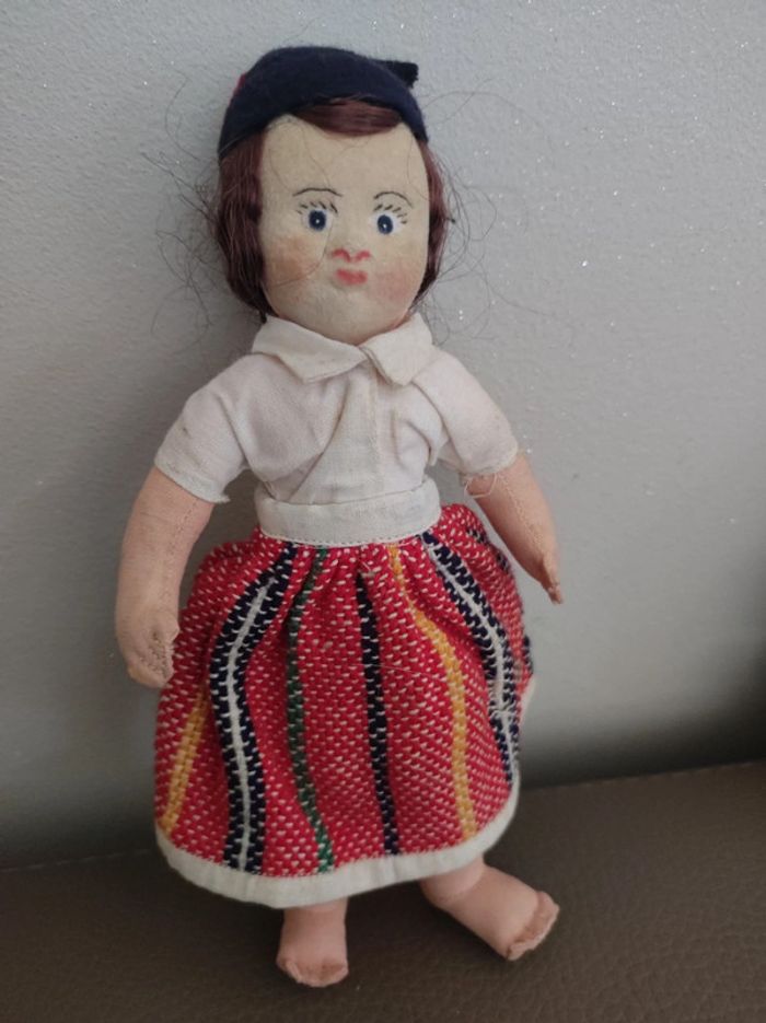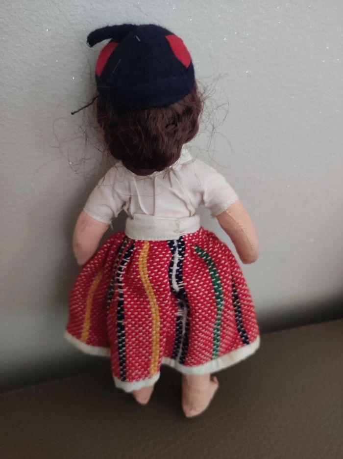 poupée du monde chiffon fait main ancienne jupe et t shirt chemisier rouge blanc tenue folkorique chapeau beret vintage collection maison non fumeur et sans animaux n'hésitez pas à faire des lots