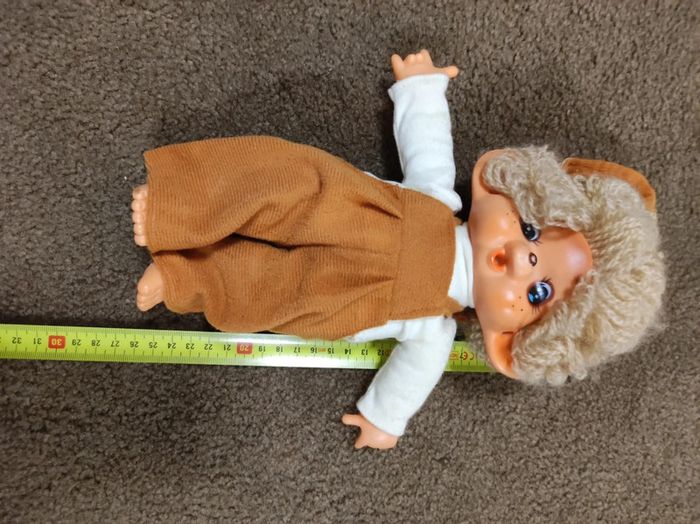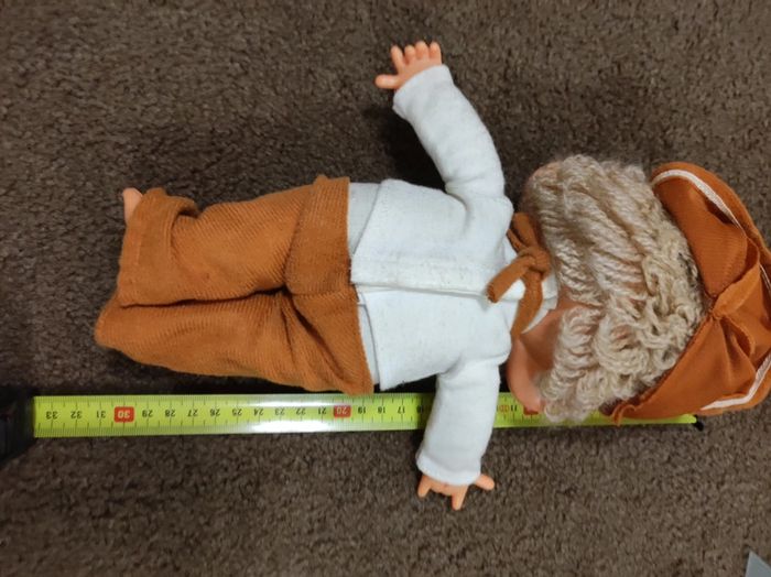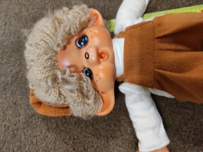 kiki cheveux laine toho junior imitation kiki corps chiffon yeux bleus env 26 cm tenue marron collector, collection vintage n'hésitez pas a faire des lots
