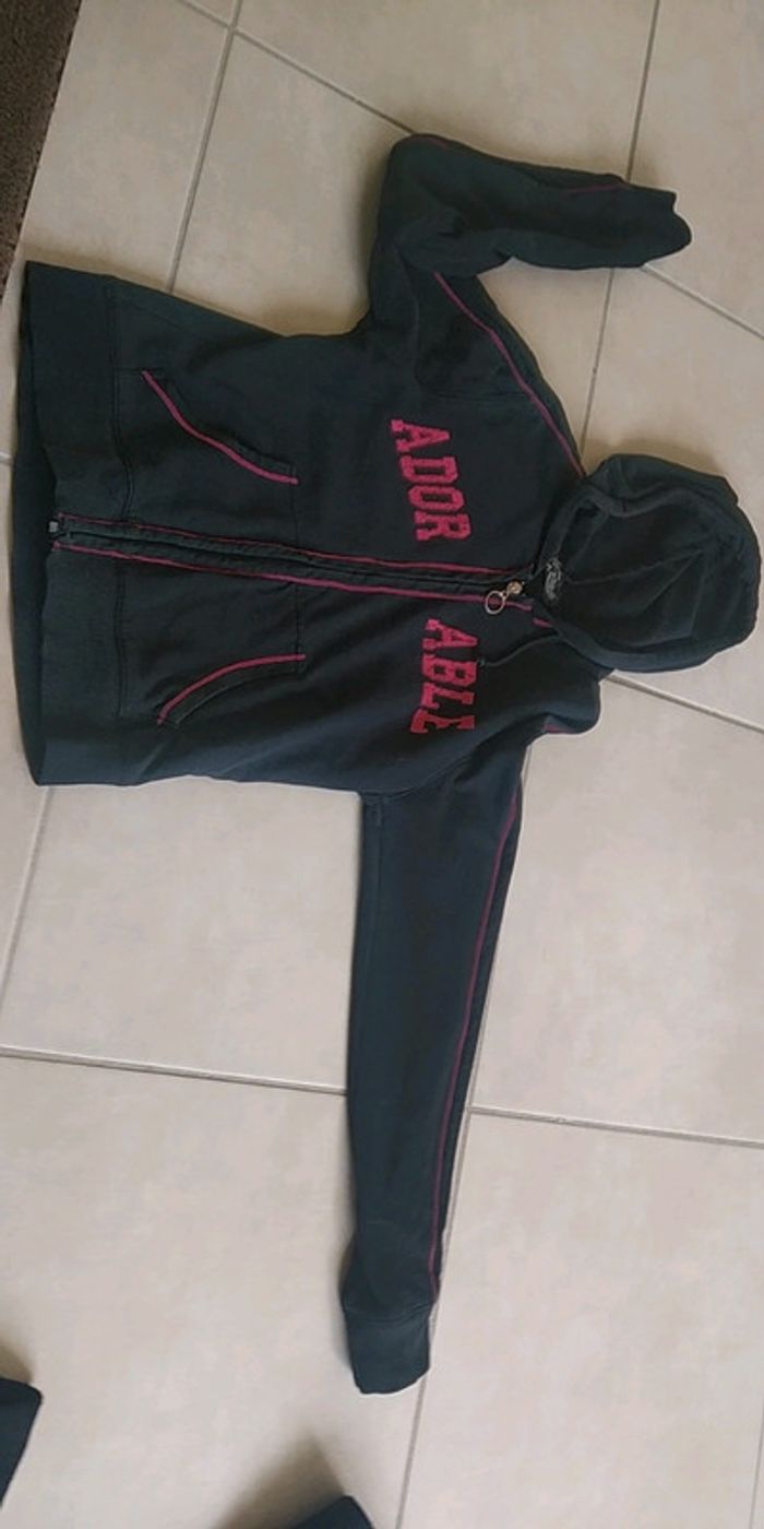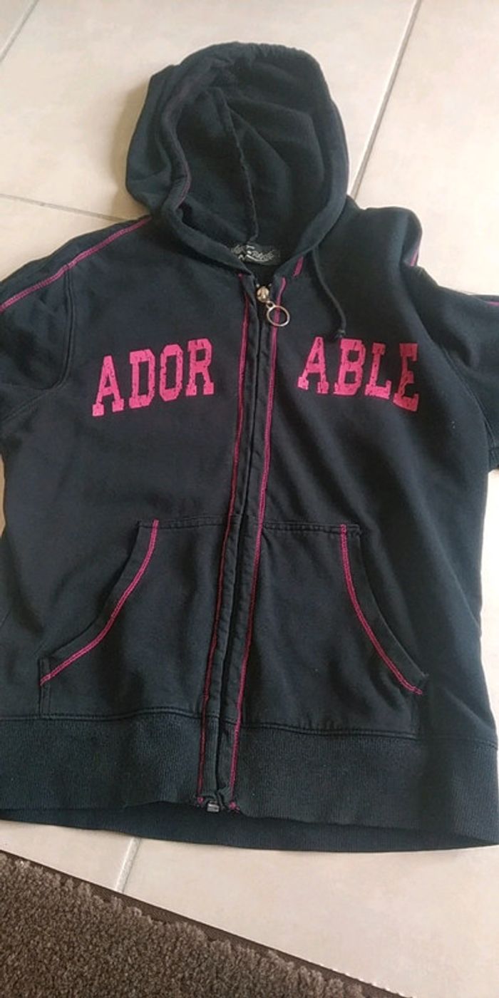 gilet noir rose ADORABLE très joli taille S fermeture zip et poches femme, jeune fille Nickel pas trou pas tâches maison non fumeur et sans animaux n'hésitez pas à faire des lots