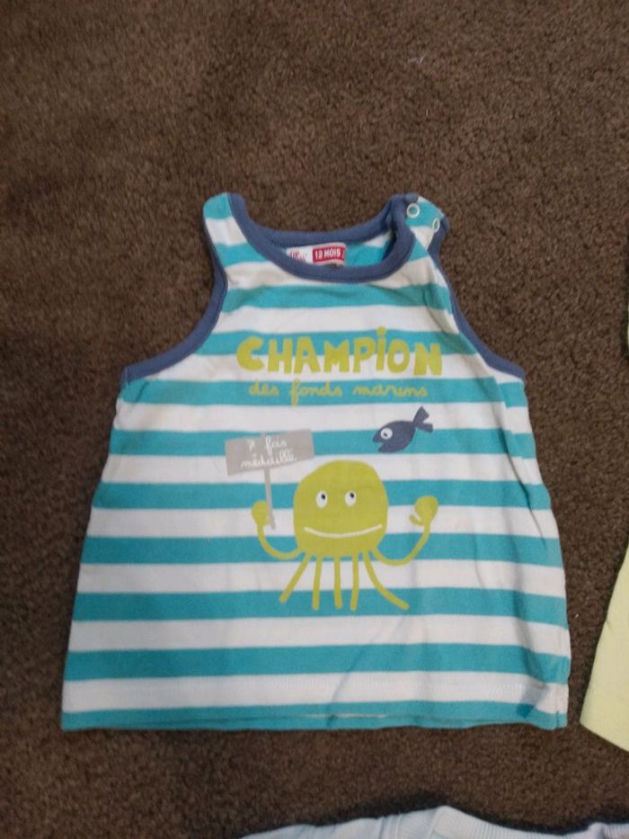 Lot 3 T shirt 9/12 mois - debardeur rayé méduse poissons DPAM excellent état - t shirt tigre Tbe - t shirt disney winnie tigrou légèrement taché en bas cf dernière photo mixte bébé fille ou garçon Maison sans animaux et non fumeur N'hésitez pas à faire des lots