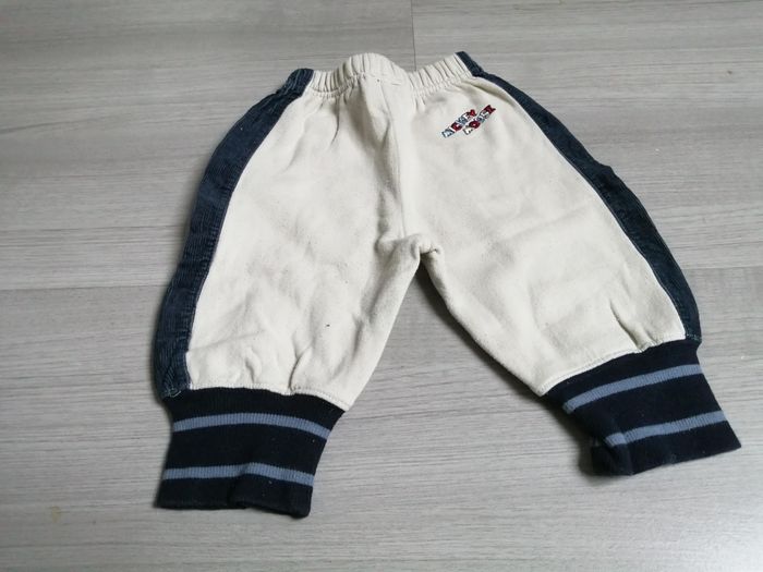 Je vends un jogging blanc et bleu marine, taille 3 mois. Très bon état. Maison non fumeur Envoi rapide et soigné.