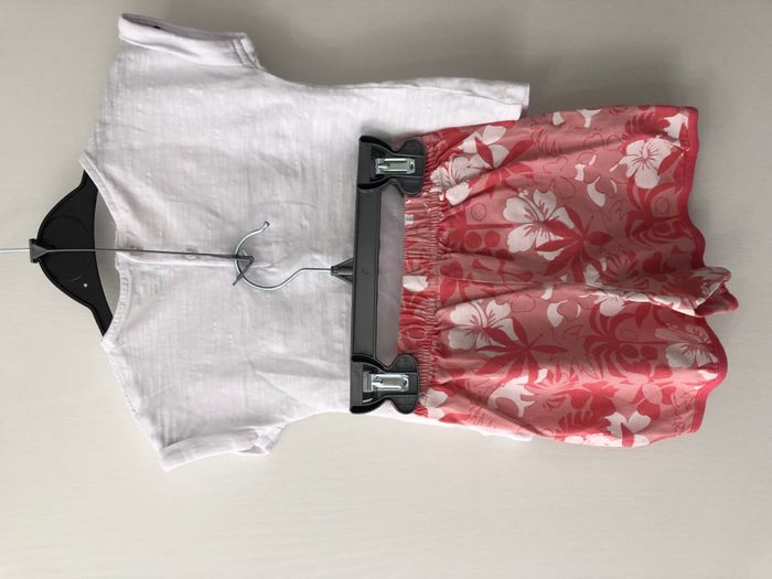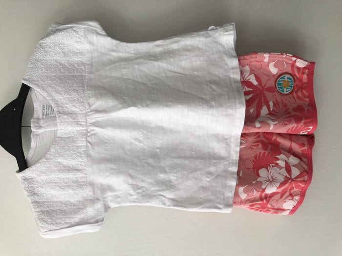Joli ensemble fille composé d'un tee-shirt manches courtes (marque Obaïbi) et d'un short élastiqué à la taille (marque baby club).