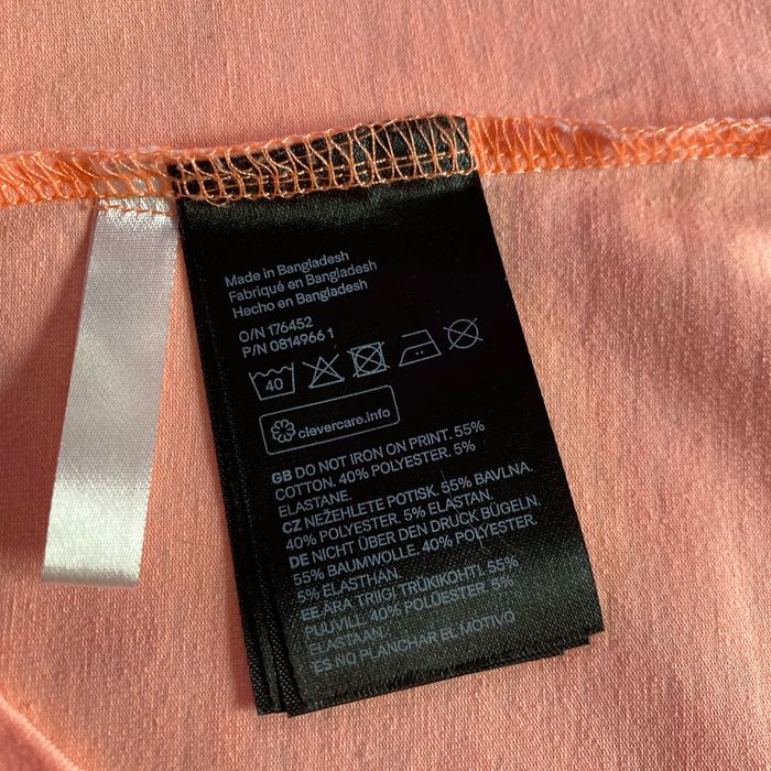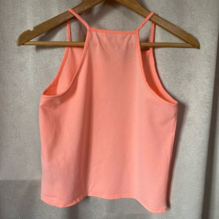 T-shirt à bretelles crop top corail Bandeau blanc California 55 % coton, 40 %, polyester 5 % élasthane Taille 14 ans 158/164 cm H&M Aisselle à aisselle 40 cm Longueur avec les bretelles 51 cm