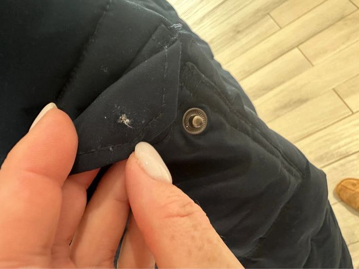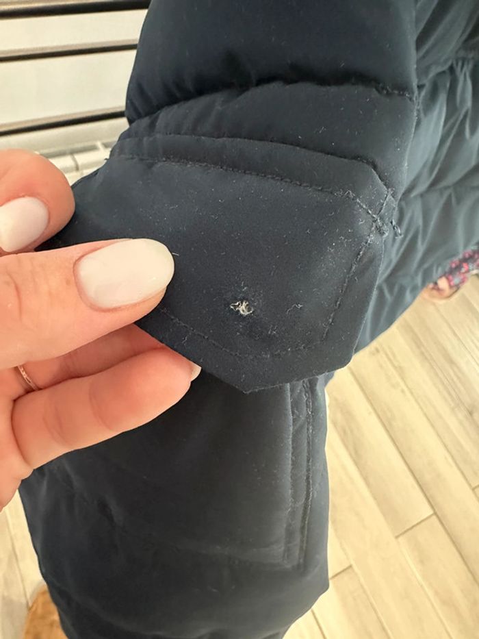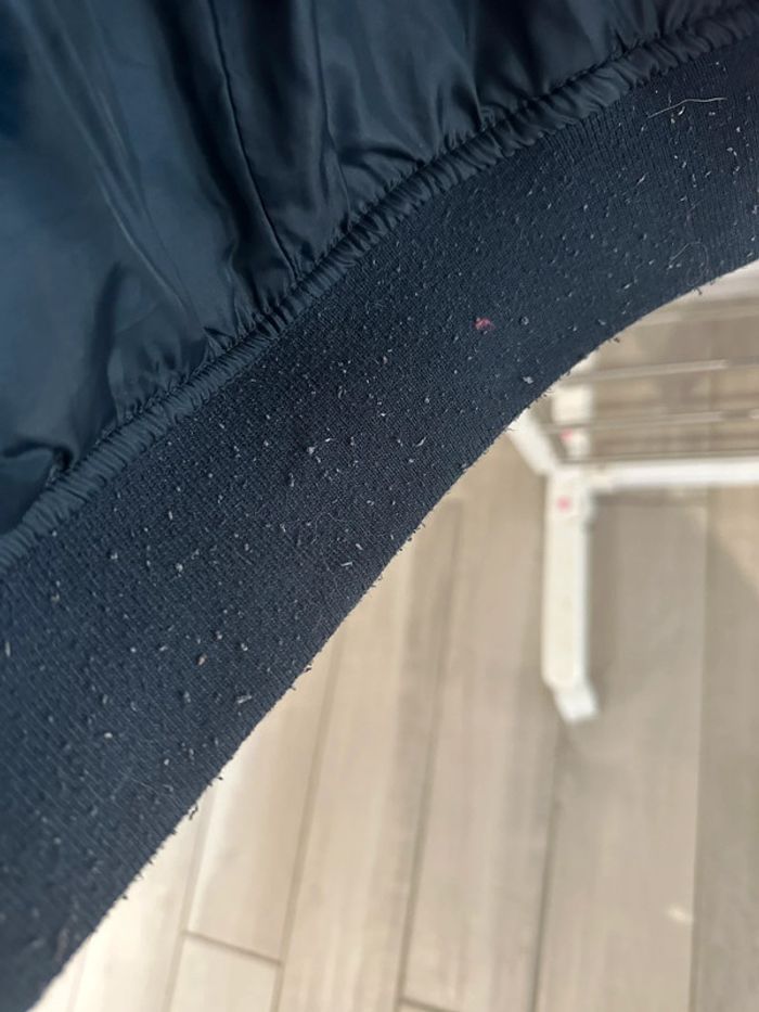 Doudoune taille M de chez kiabi Bon état général. Un petit « accro » au niveau du bouton de la poche (poche de la manche) voir photo. Et quelque petite bouloche sur le tissus du bas. Encore en bon état sinon général.