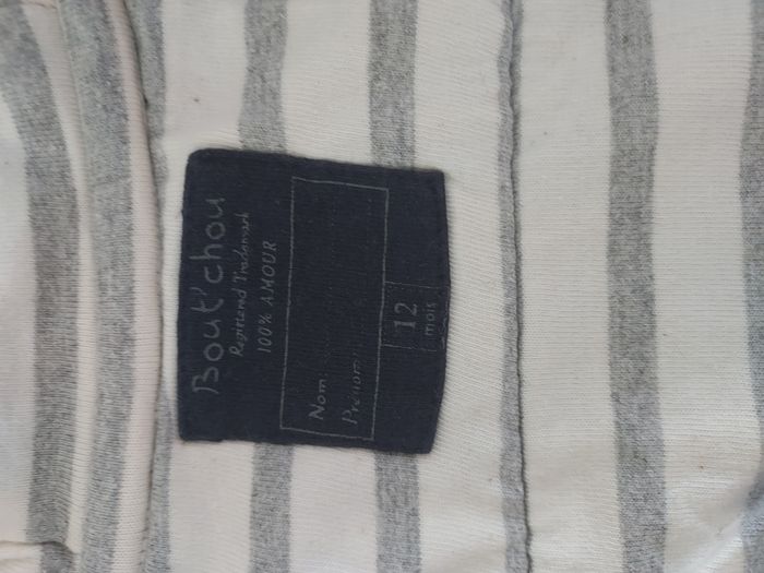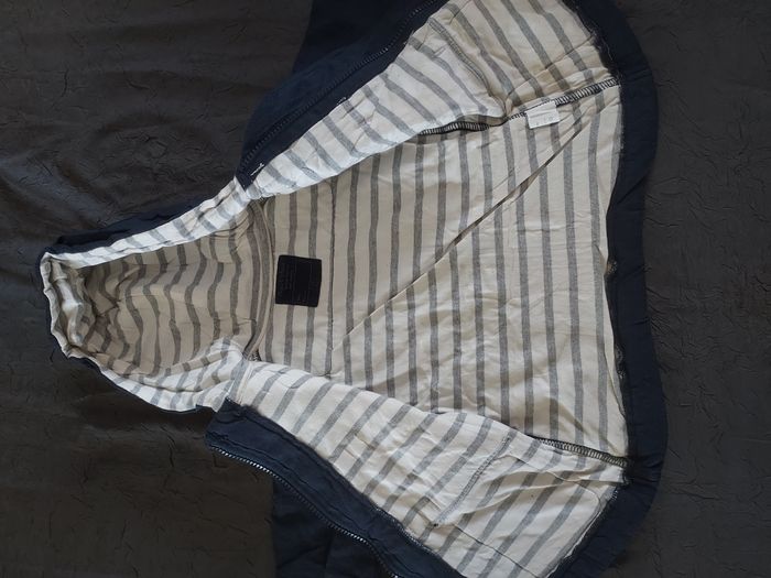 Veste type marinière Fermeture éclair Capuche non amovible Deux petites poches sur le devant 12 mois