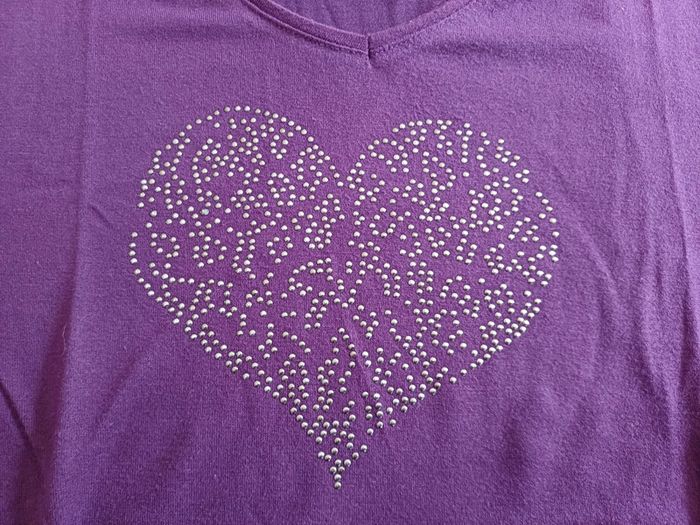 Tee-shirt avec un cœur en incrustation dorée. Taille XL.