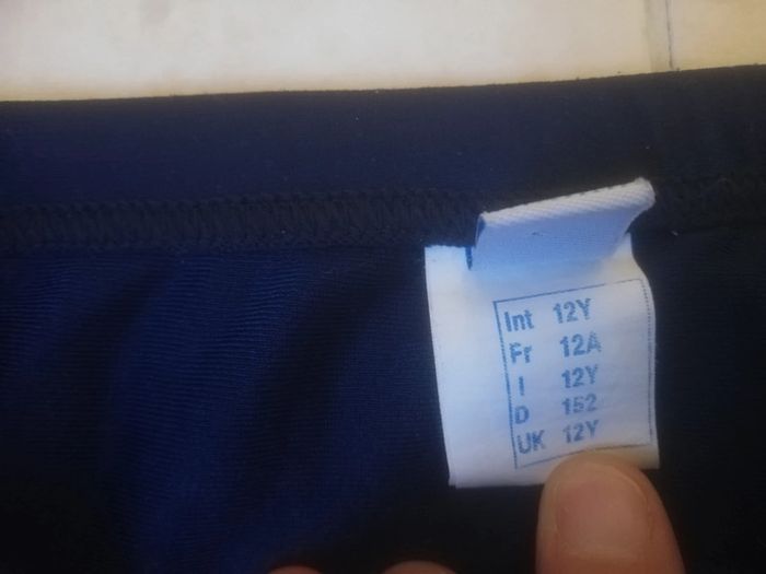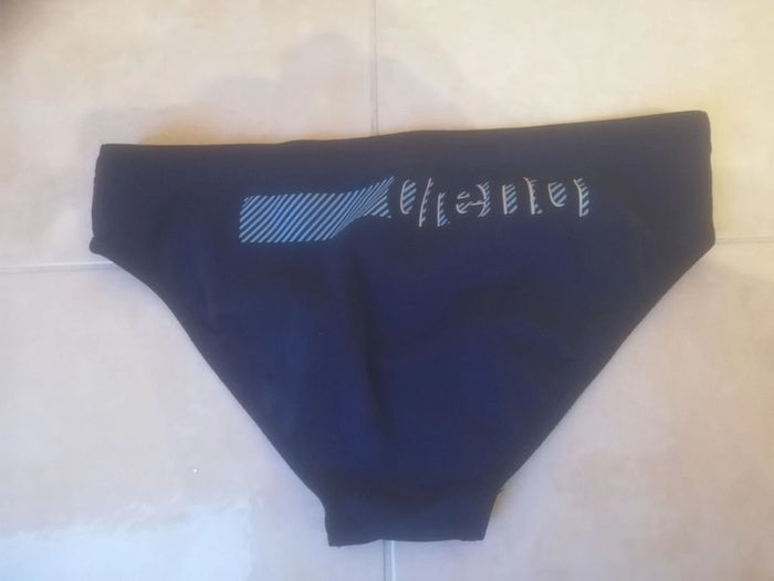 Slip de bain bleu foncé en bon état. Taille 12 ans.